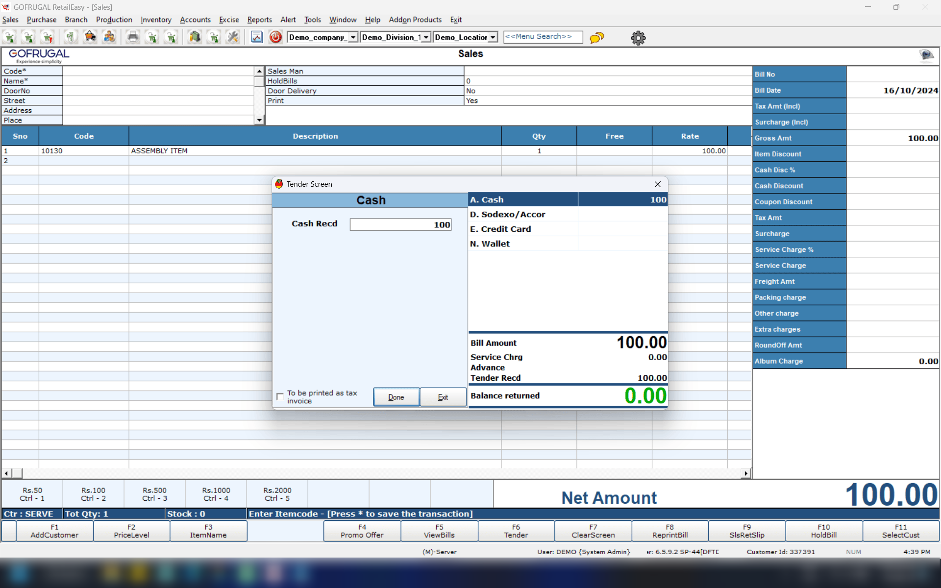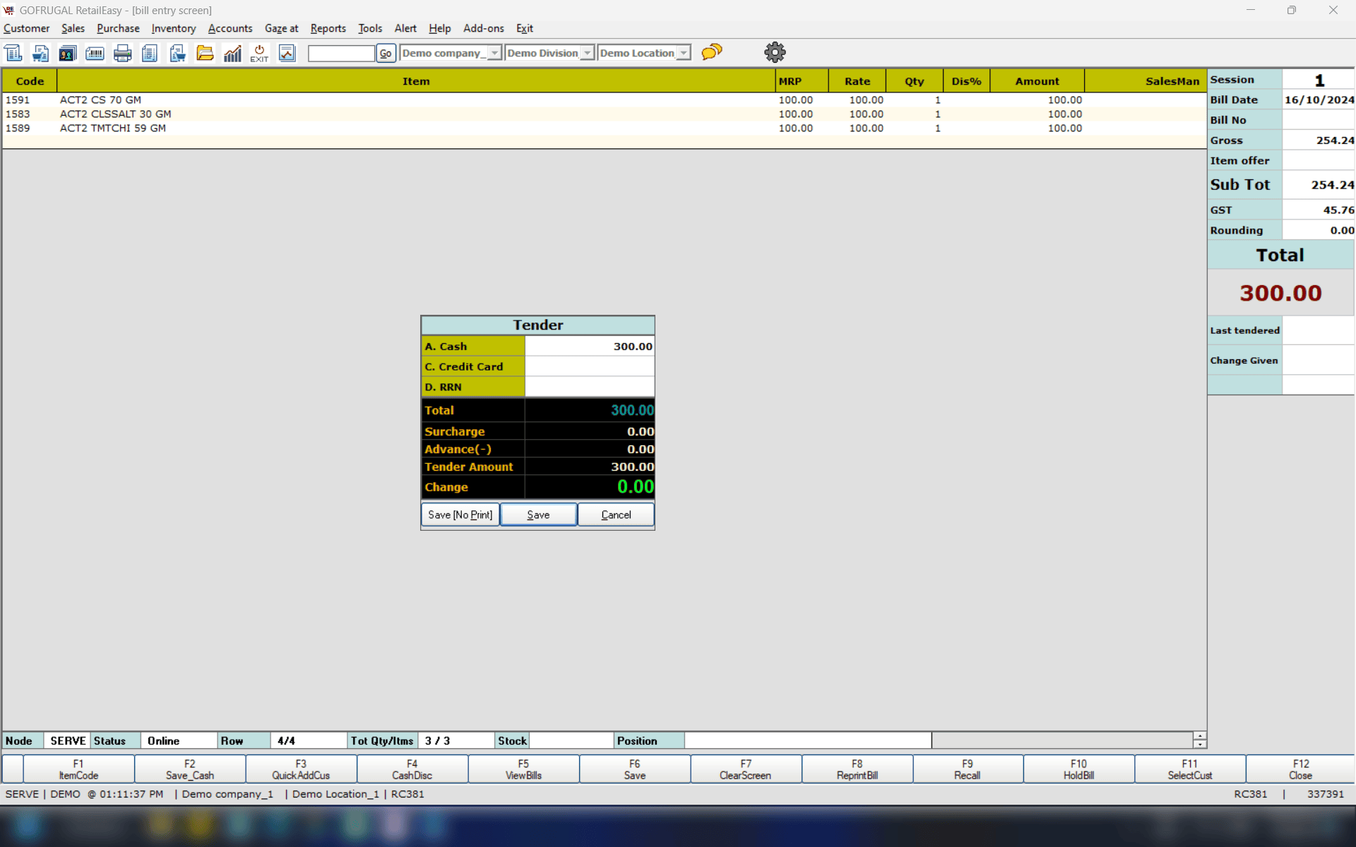Step 3: Your items will be loaded, and you can complete the billing process.