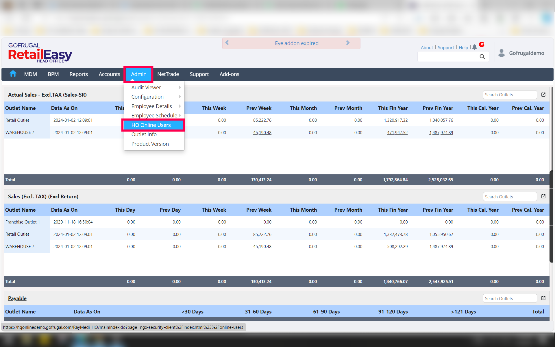 To check the HO Online Users, go to Admin > HO Online Users.
