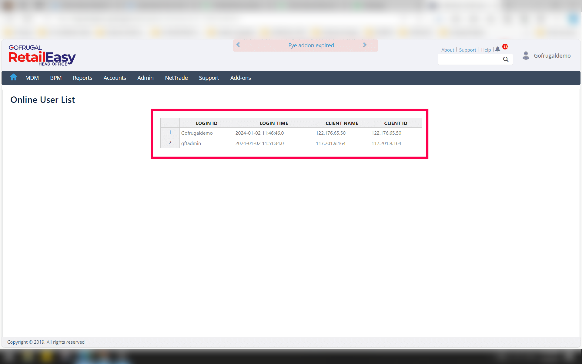 The HO Online Users screen is used to check/see the number of users connect at HQ at that point of time. This is an excellent option for the IT Admins to identify the logged in users.