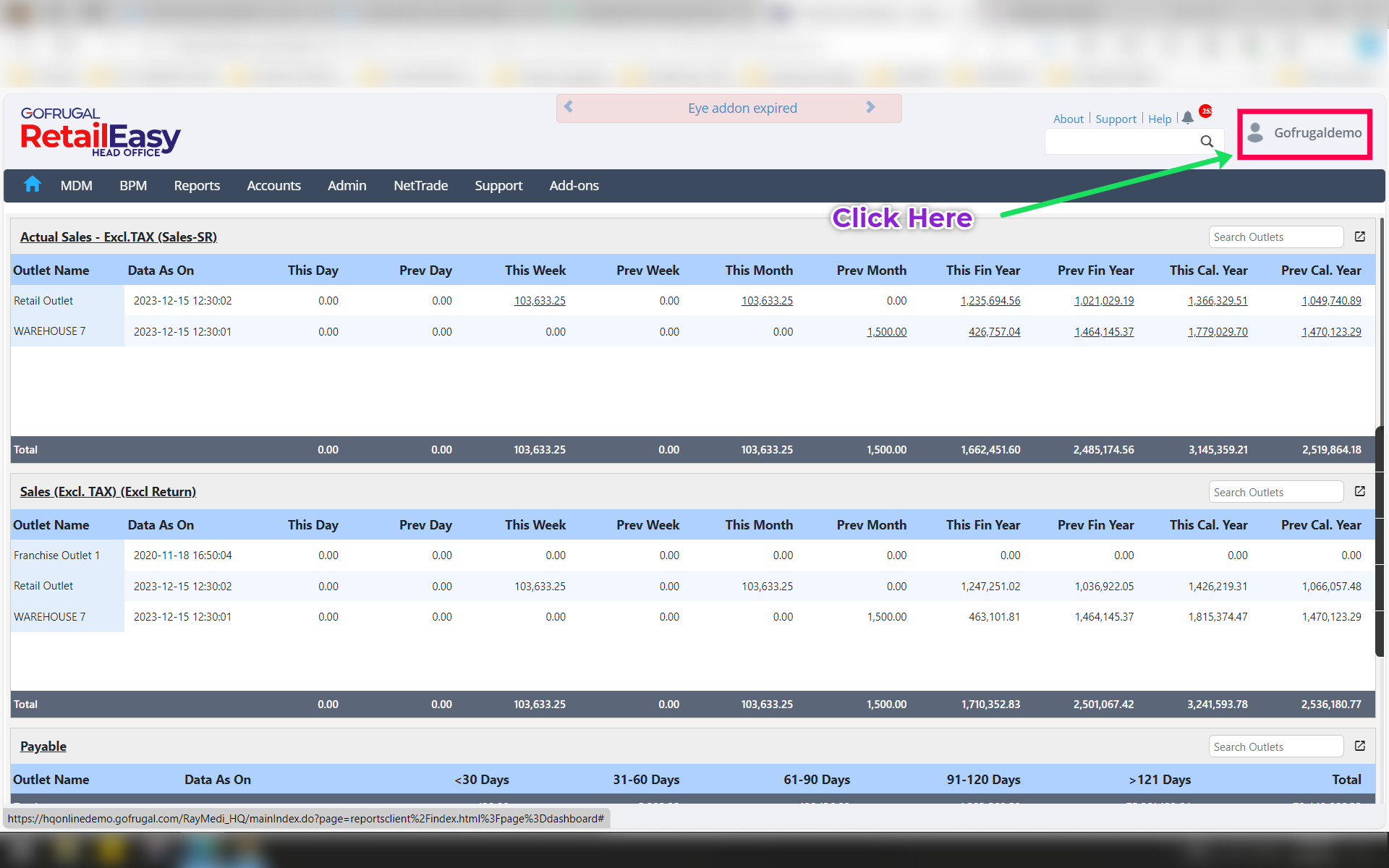 Step 1: Open the HQ and click on the User Name in the right top corner of the screen.