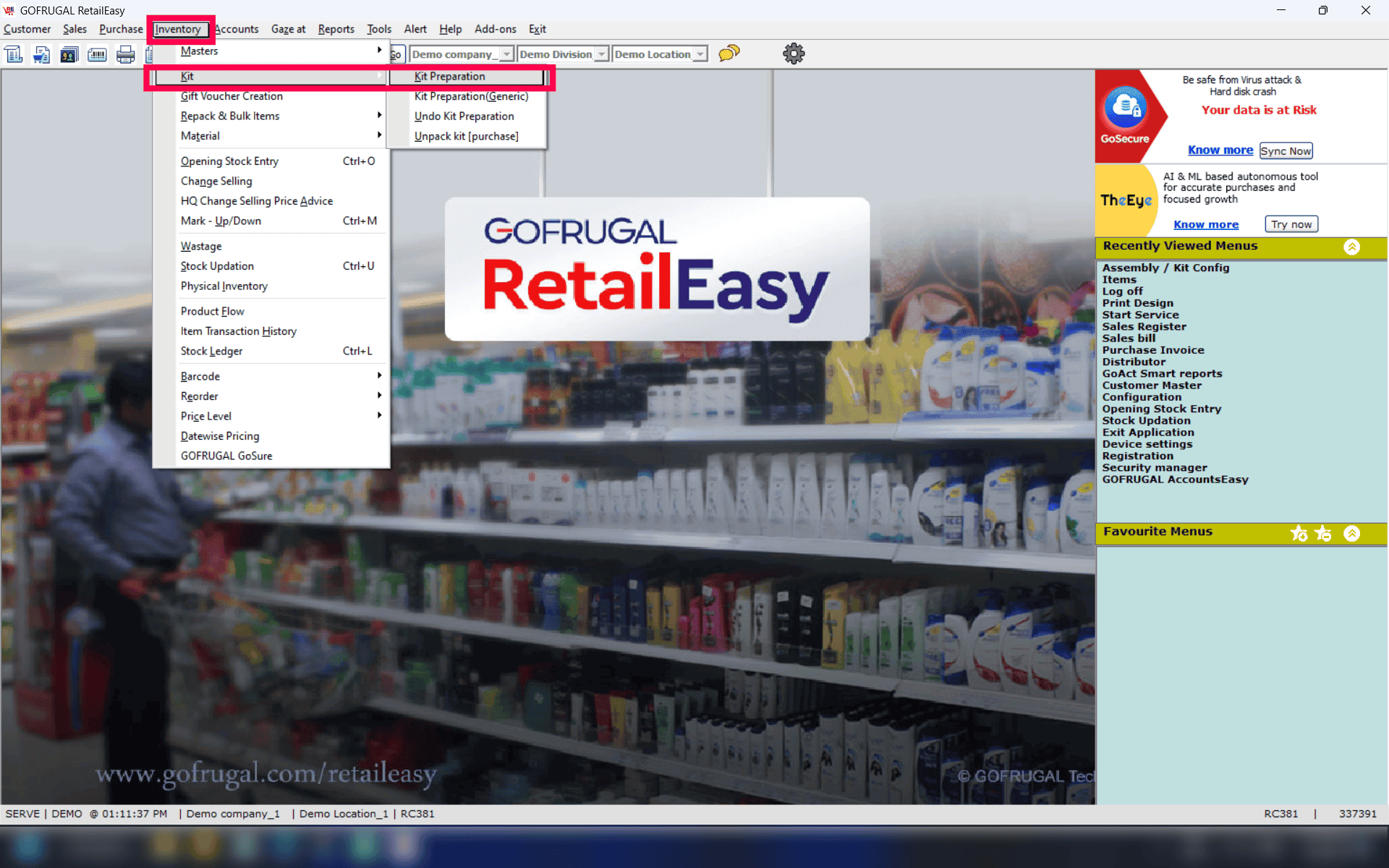 Step 1: Go to Inventory > Kit > Kit Preparation.