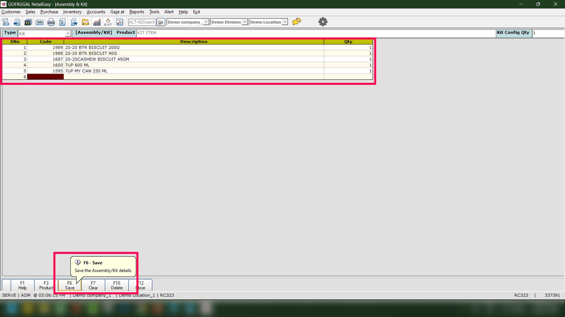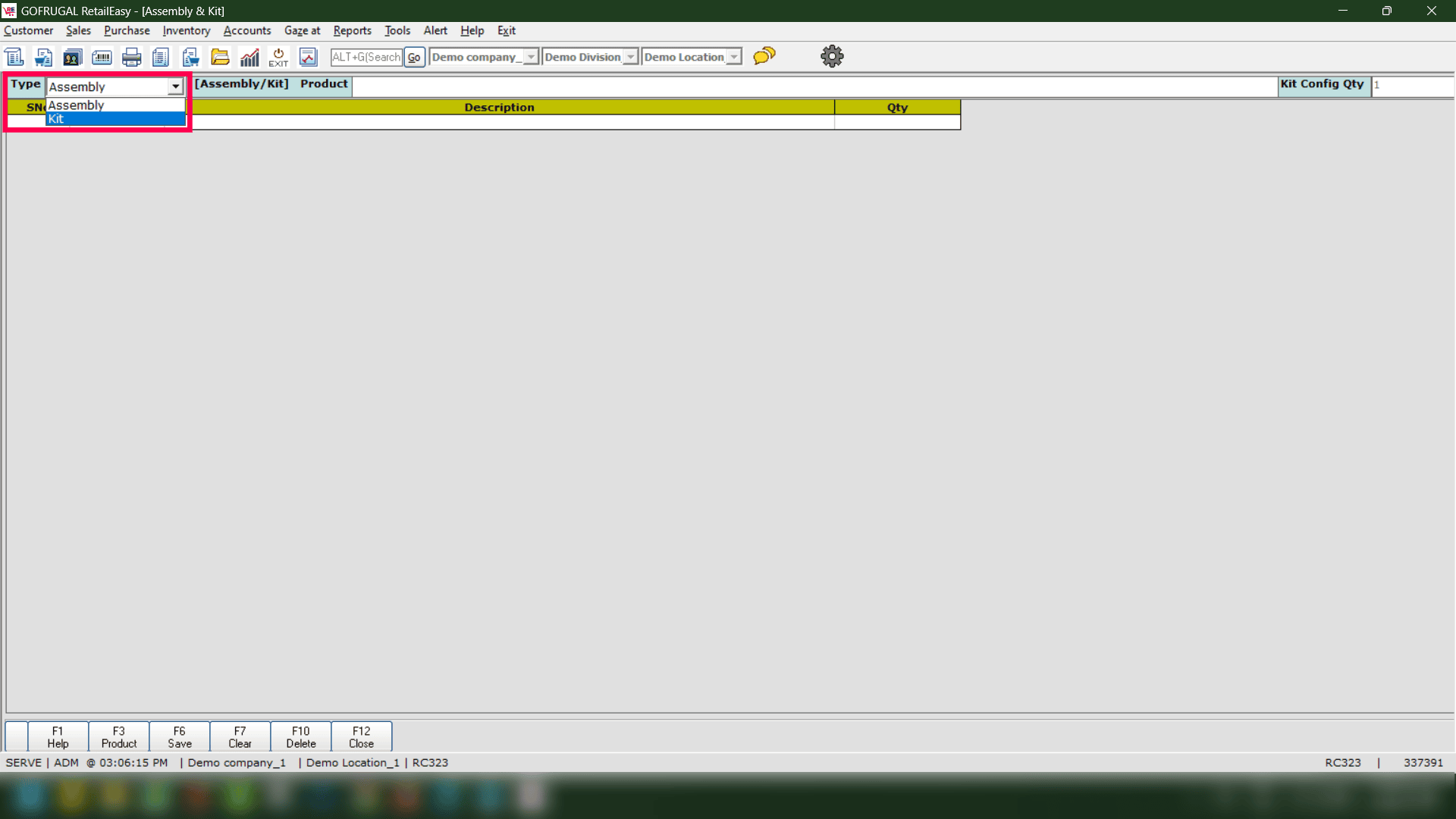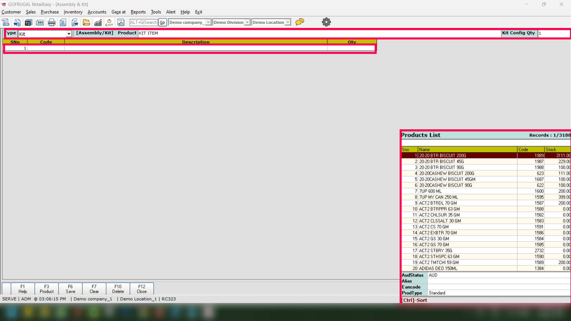 Step 3: Press Enter and select the Assembly/KIT Product from the list.