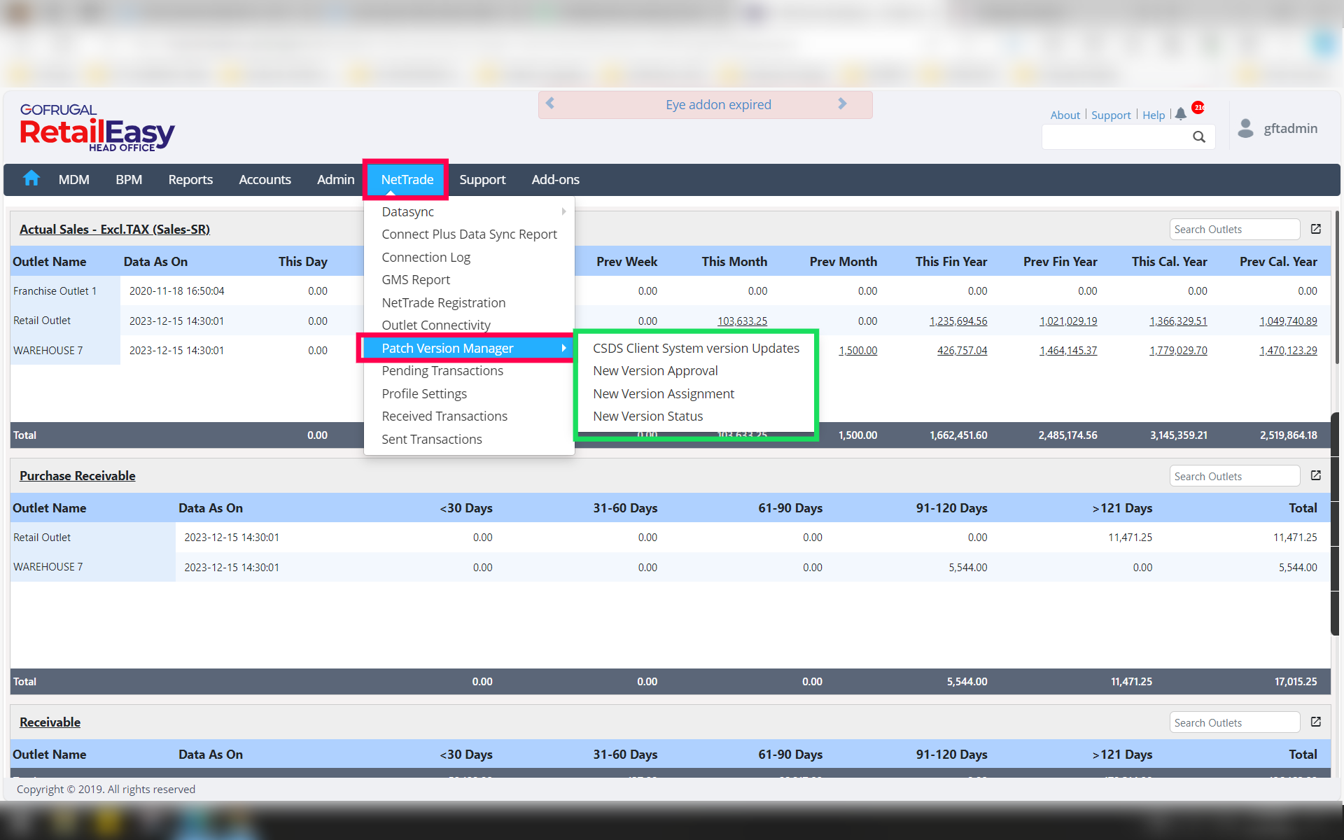 The Patch Version Manager is used to manage patch updates of the outlet servers. After the HQ Patch update is completed, we can check the patch version from here and send to outlets so that the outlet servers can be updated as per the customer need.