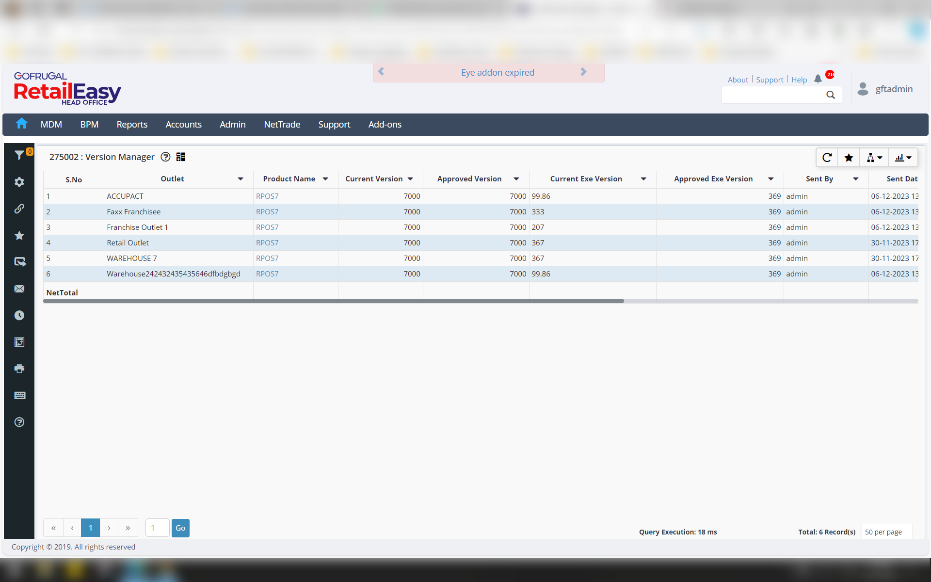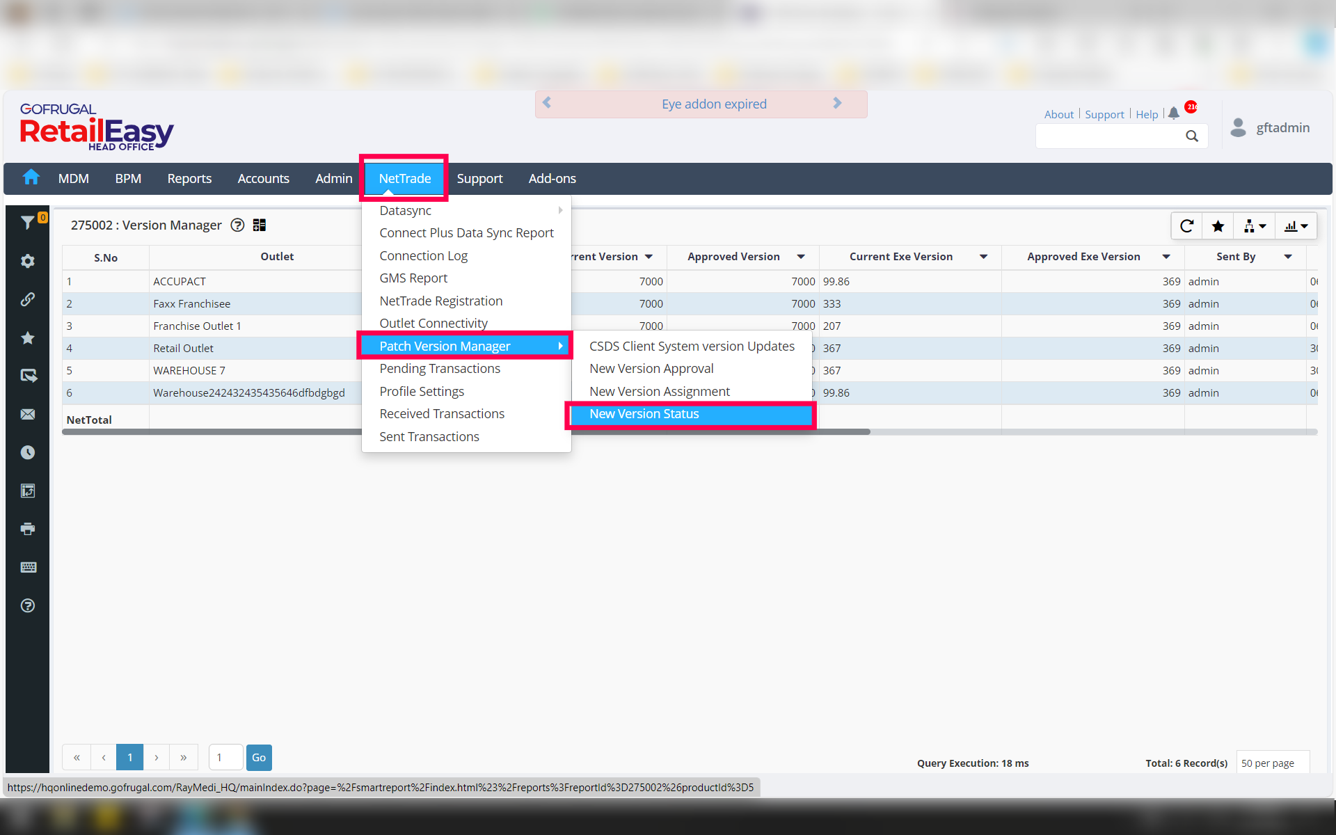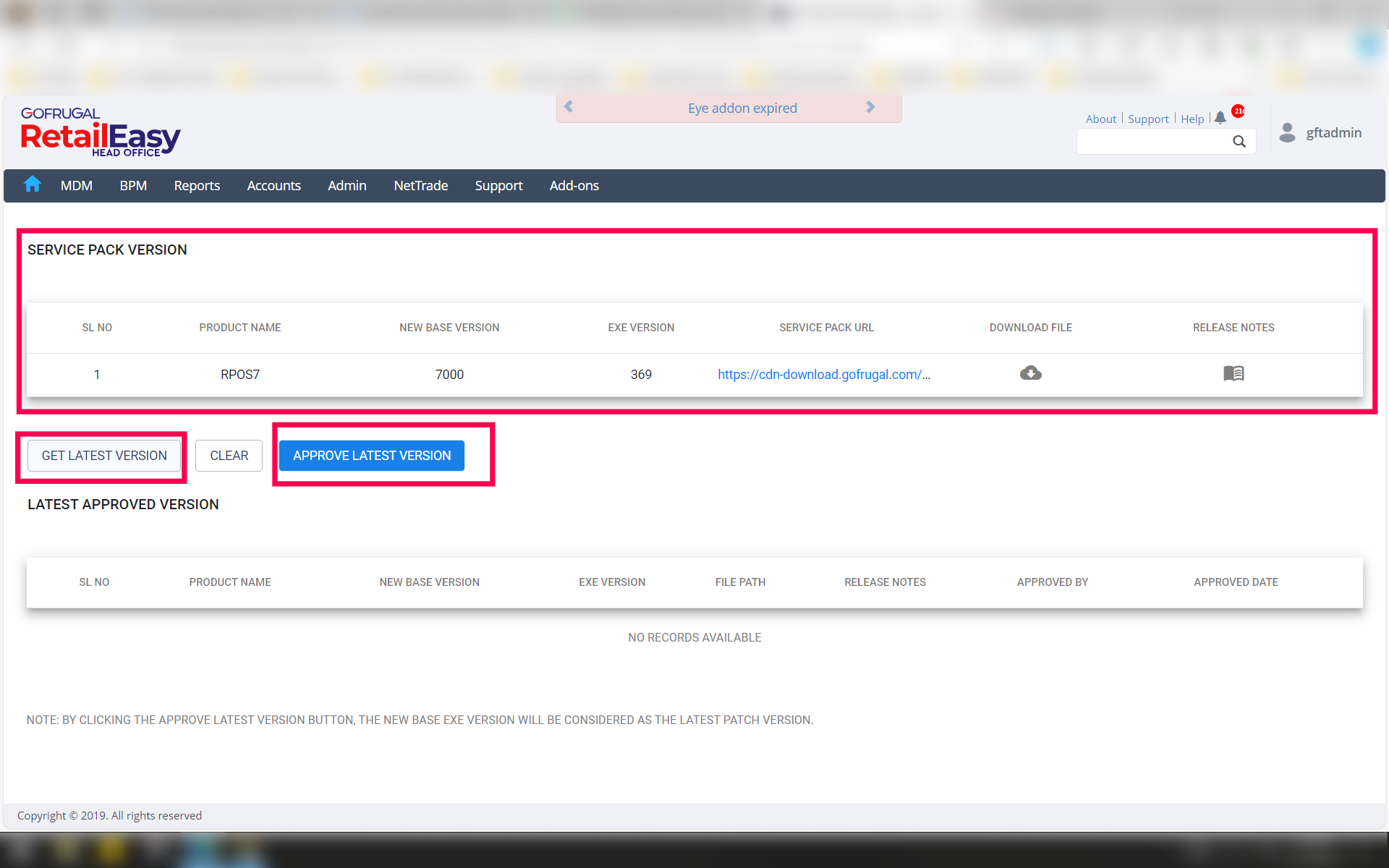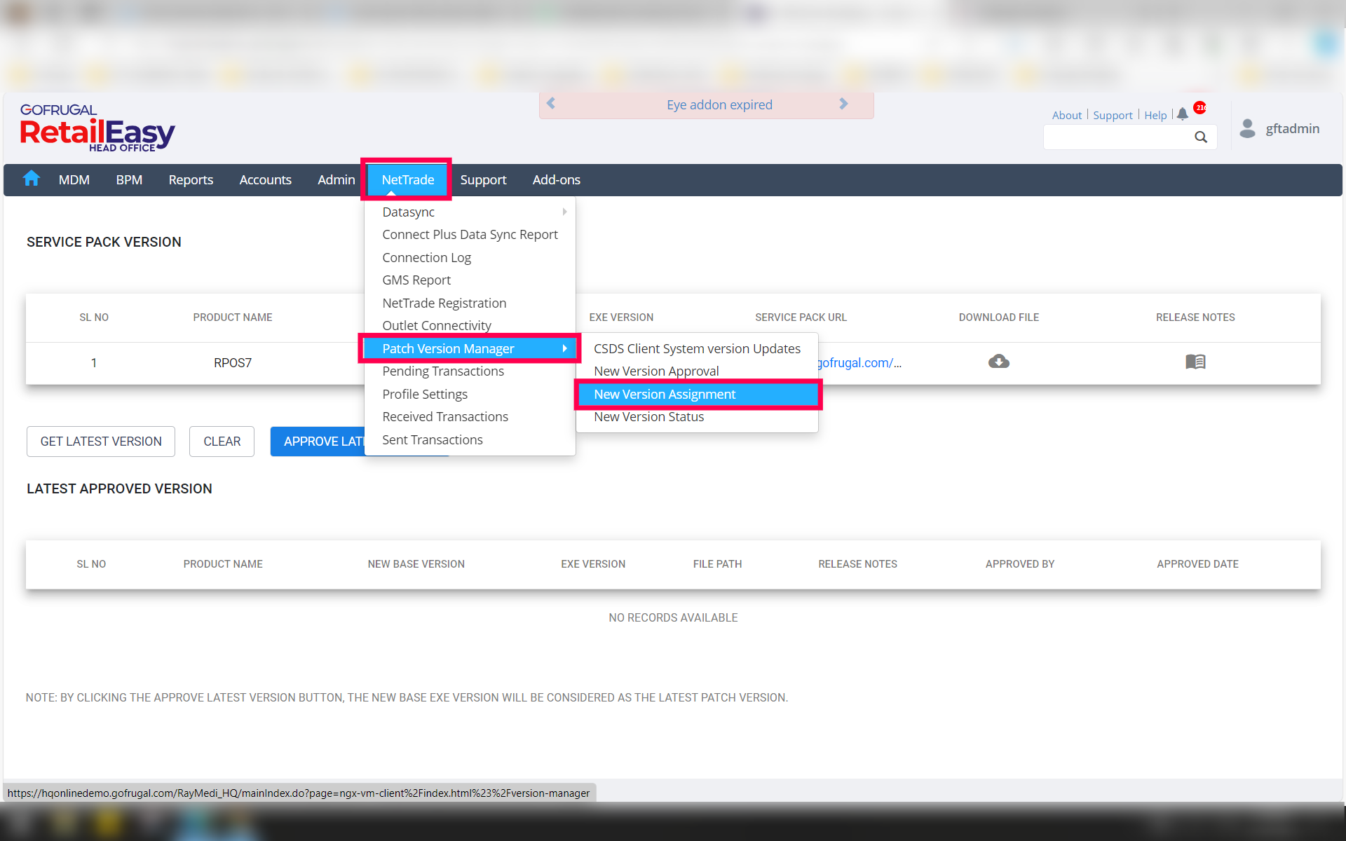 Then click on the APPROVE LATEST VERSION button to apply the patch. This info will be transferred via NetTrade from HQ to Outlets and after restarting the RPOS and NetTrade, (Mainly after restarting the NetTrade) the outlet patch process will be started.