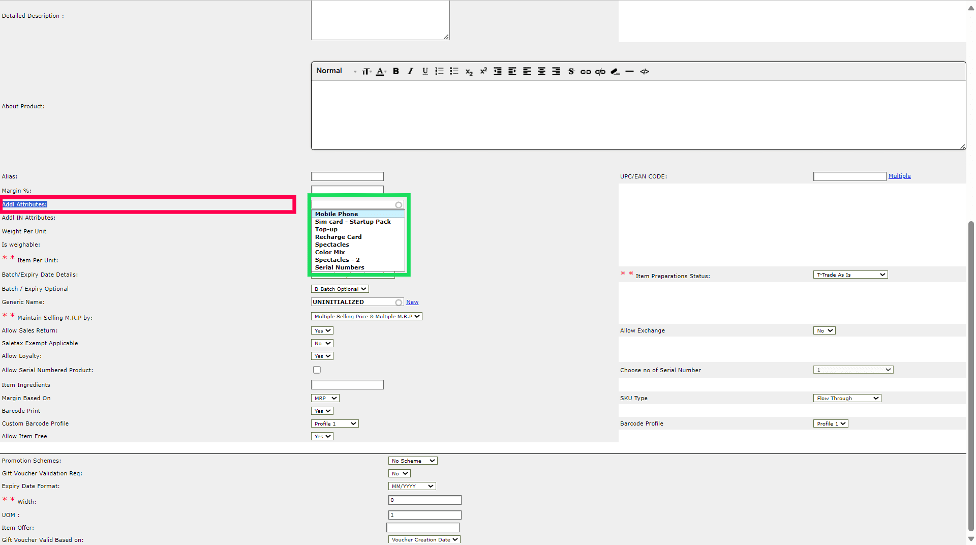 Step 3: Locate "Addl Attributes" and select the option as per your need from the list.