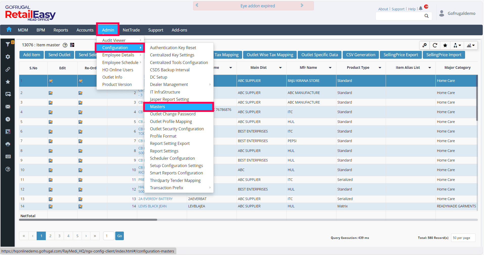 Step 1: Go to MDM > Item Master Management > Item Master.