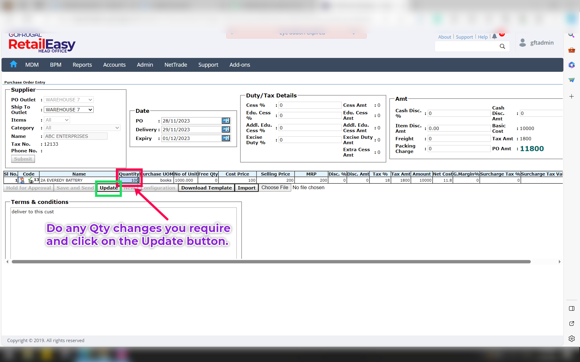 Step 4: Change the Quantity if you want and then click on the Update button.