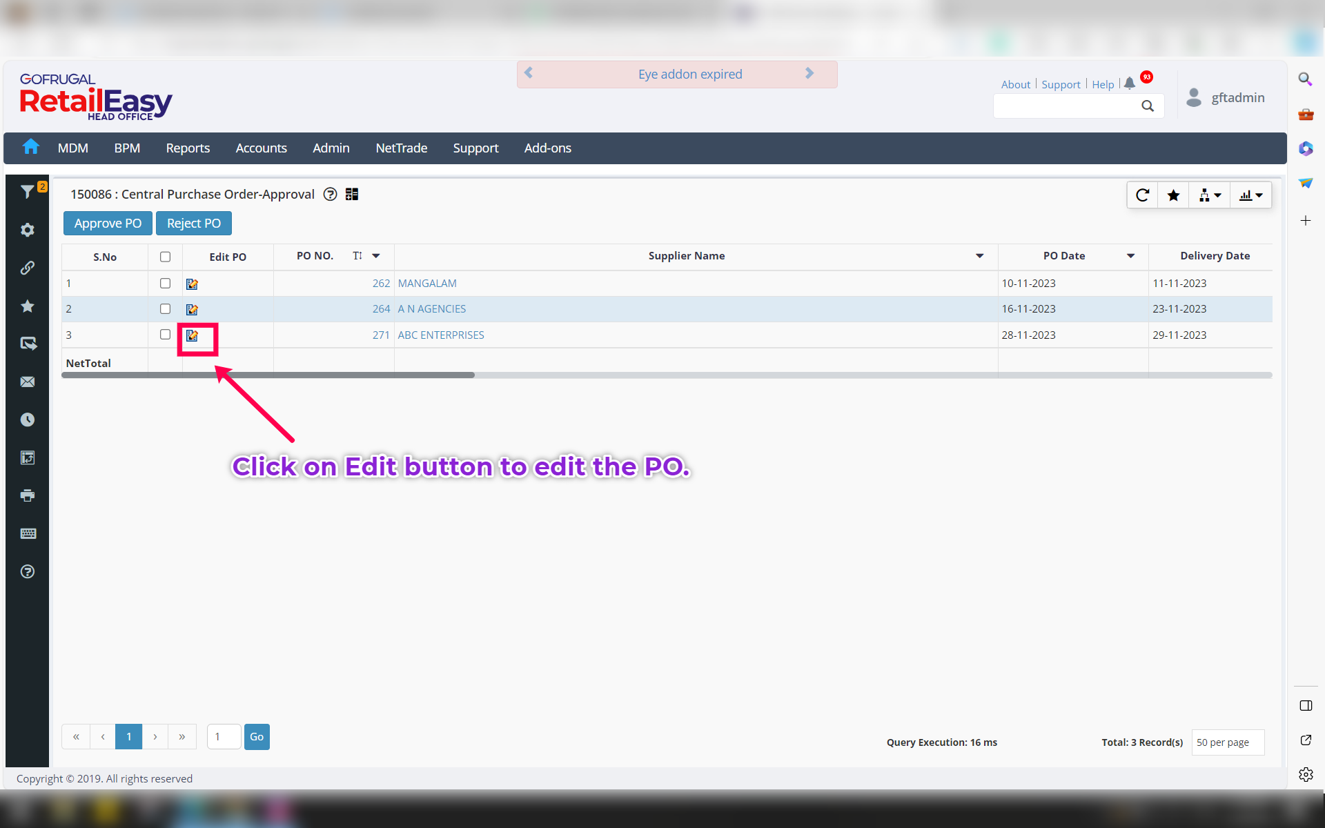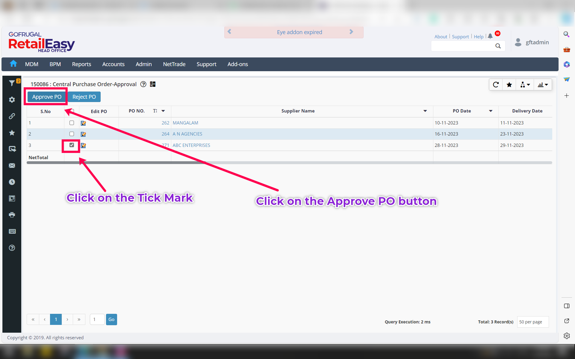Step 5: Put a tick mark on the desired PO and click on the Approve PO button to approve the PO.