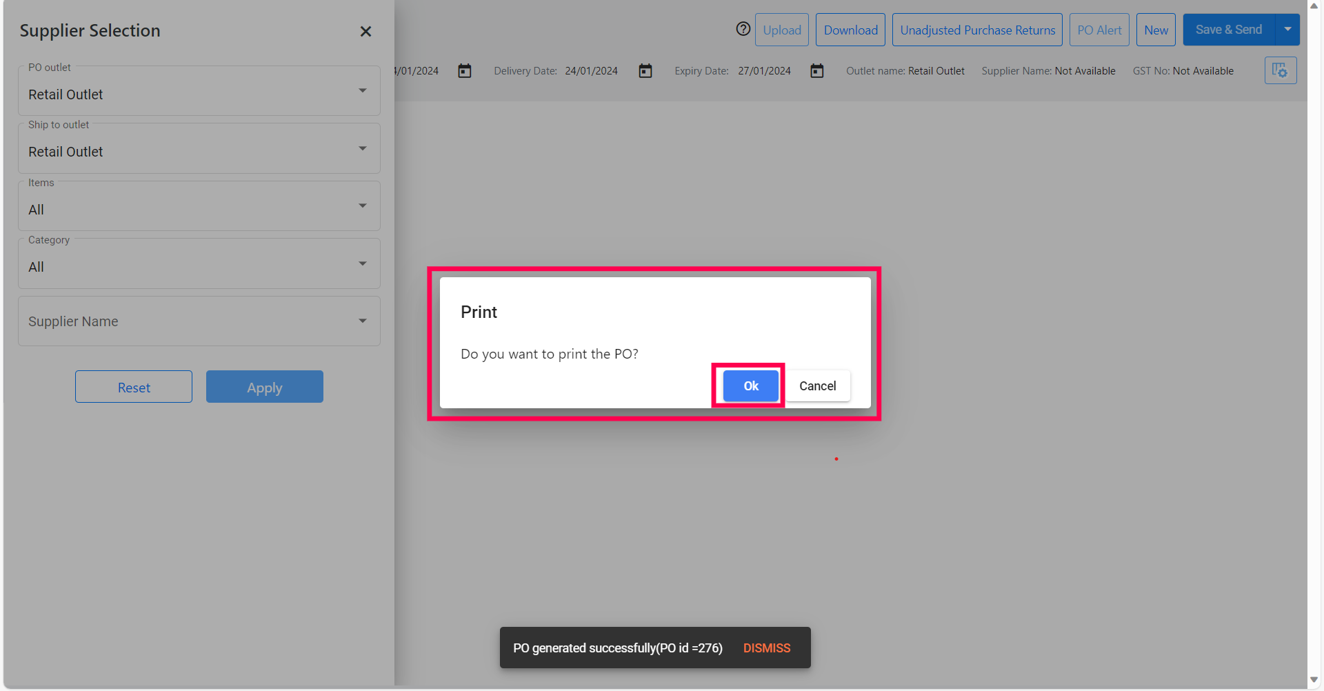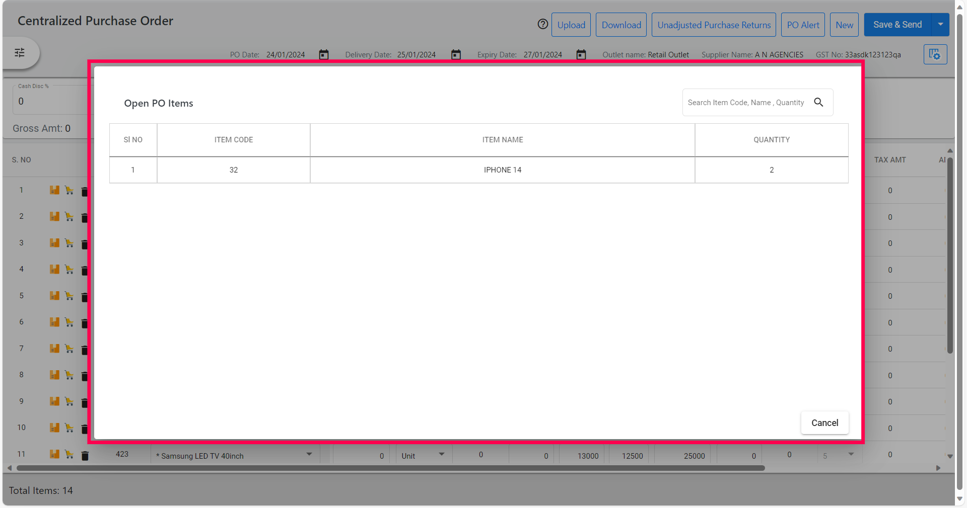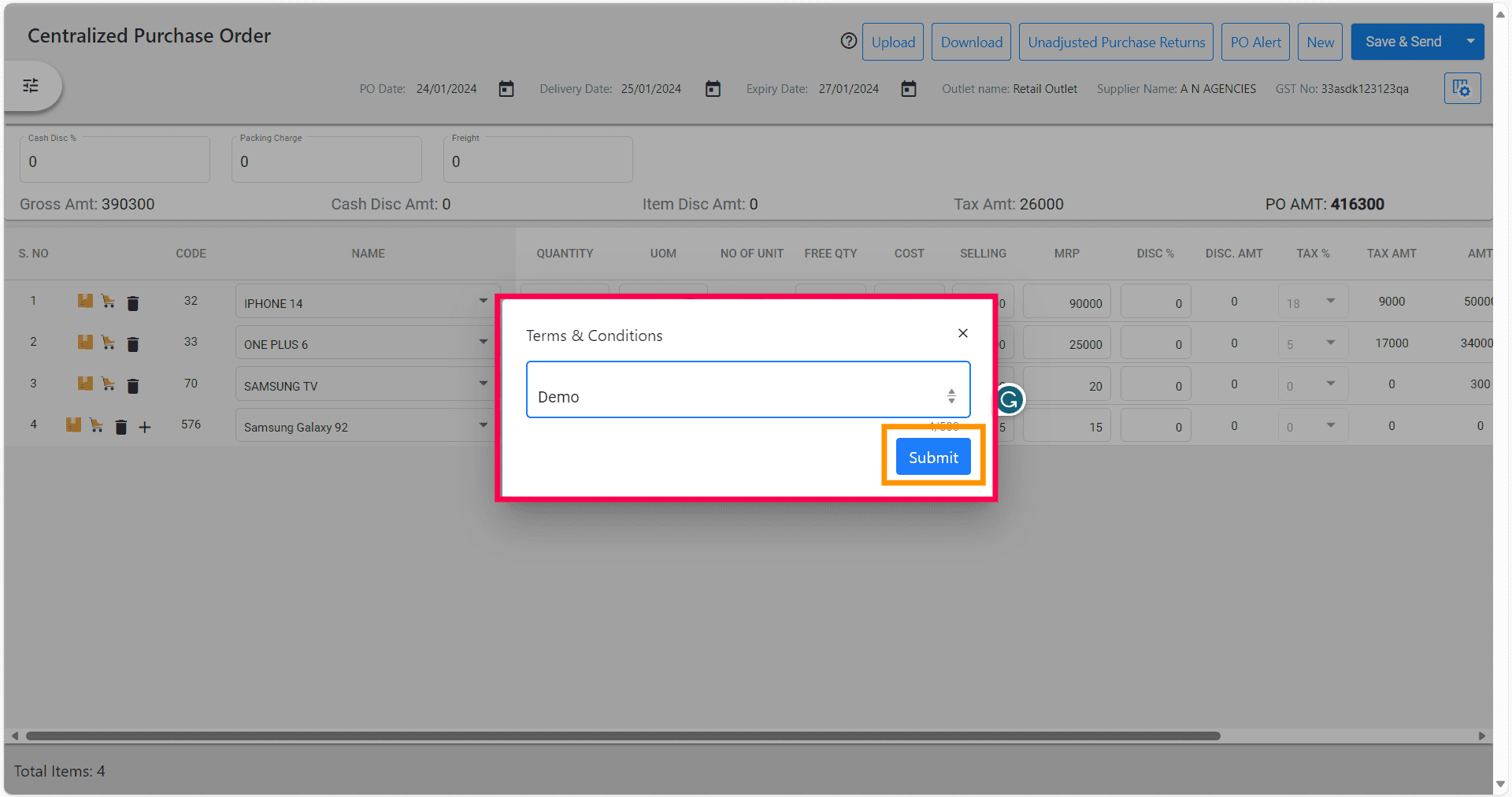 Below are the steps to create a PO from the Central Purchase [Beta] Screen:
