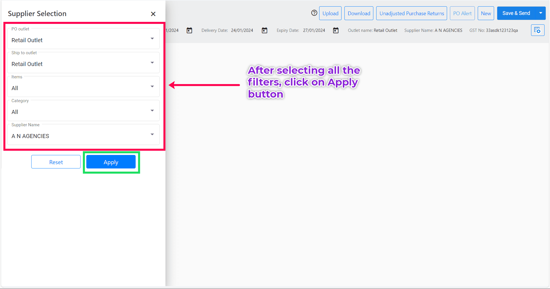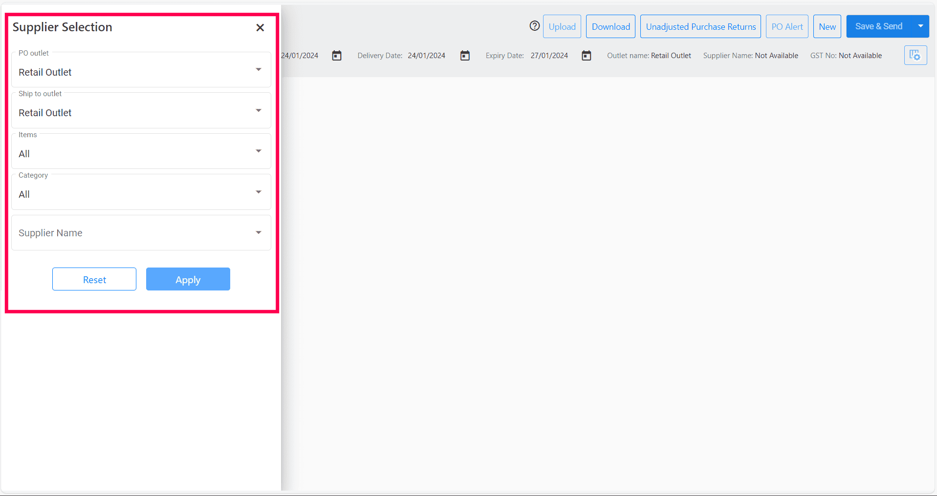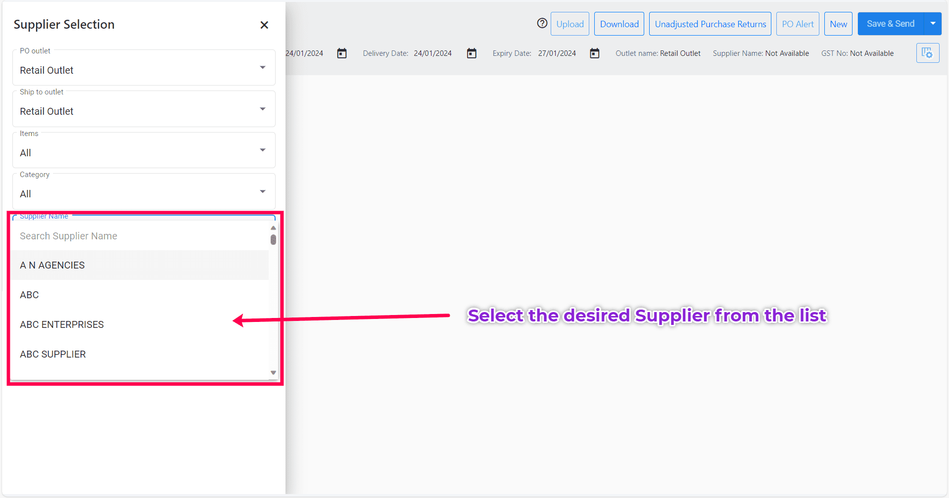 Below are the steps to create a PO from the Central Purchase [Beta] Screen: