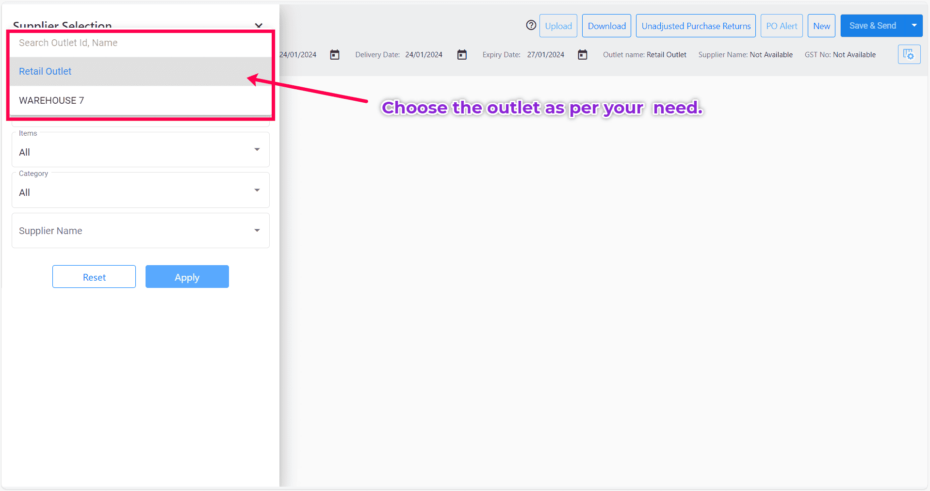 Step 2: Search or select the Outlet Name or Outlet ID. Choose as per your need.