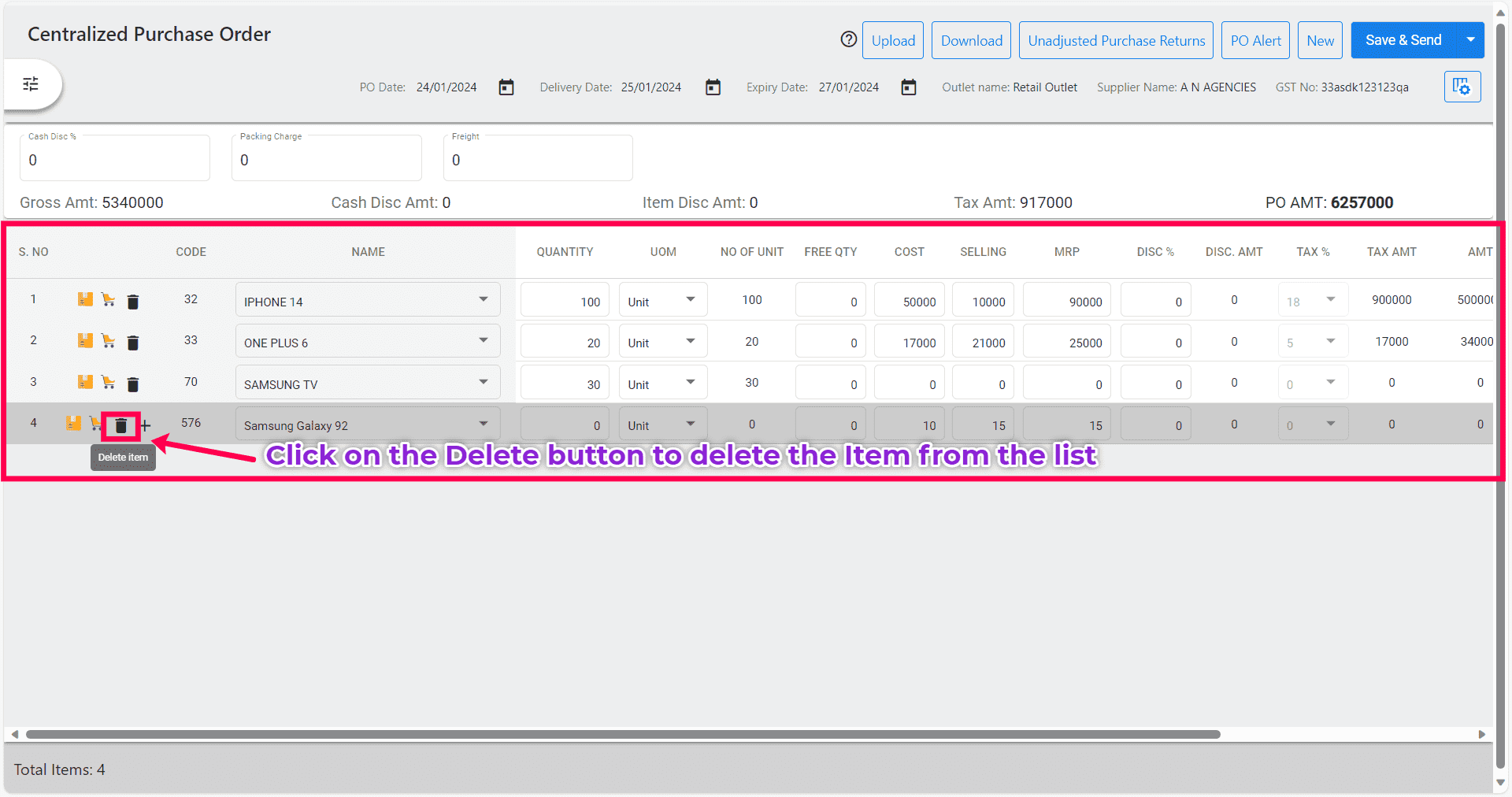 Step 8: Click on the Delete button to remove the unwanted or non-required items from the list.