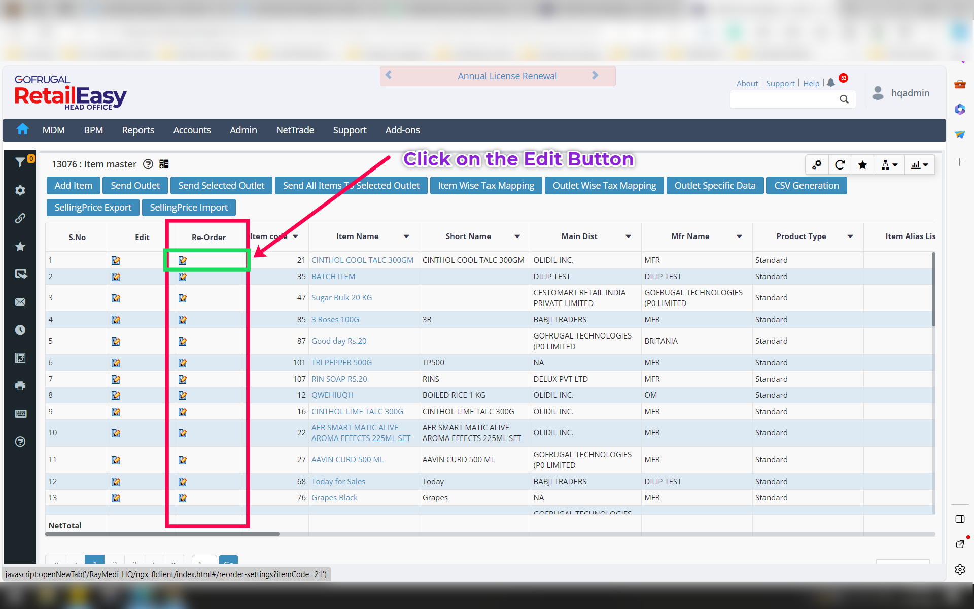 Indents are made from Outlets to HQ or Warehouse. These Indents are of two types, Manual and auto. When you want to set Manual Indent or Auto Indent for the Reorder, you can set the formula as well for an Item Outlet.