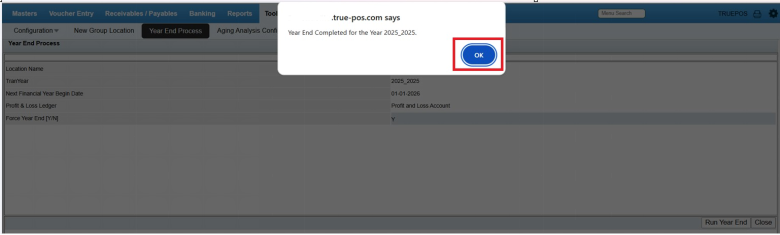 With this, the Year Begin Process for True books has been successfully completed. Happy Accounting!