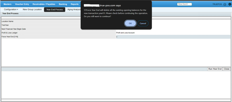 Note: Before running the year end process, please make sure the previous financial year transactions are completed. The entries for previous financial year should not be done after the year end process, it will lead to report mismatch.