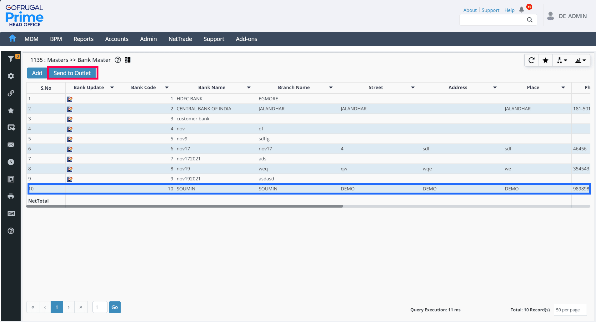 Click Send to Outlet to share the information with all the branches.