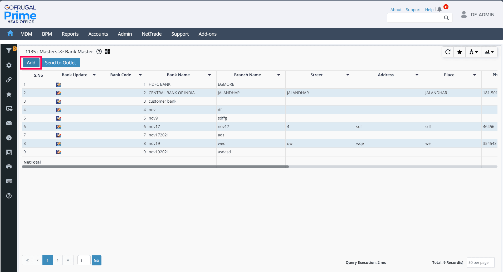 Go to MDM > Bank Master.
