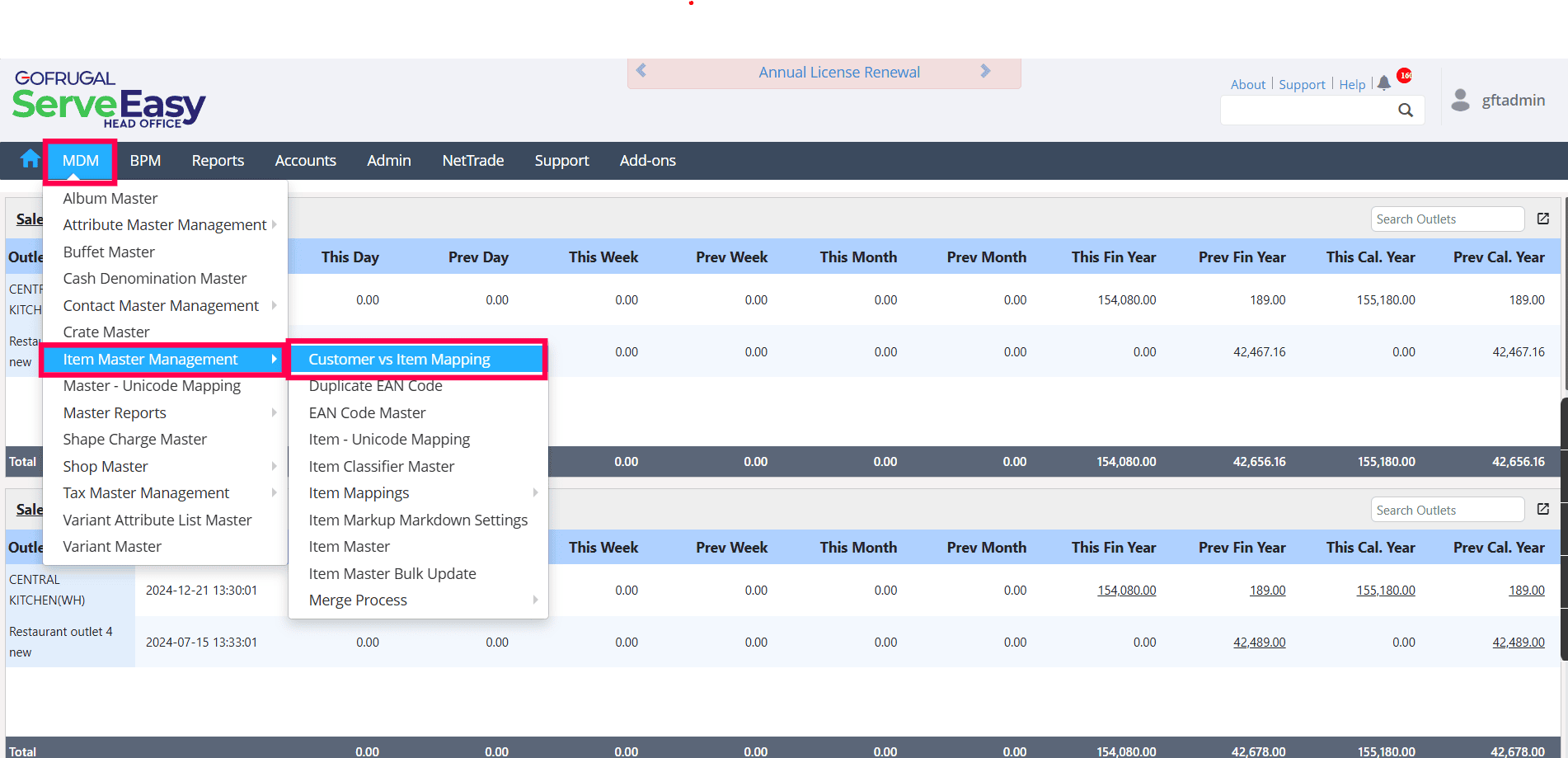 Note: Once the sync is done with HQ to outlets, the Customer Vs Item mapping will be reflected in the outlet POS.