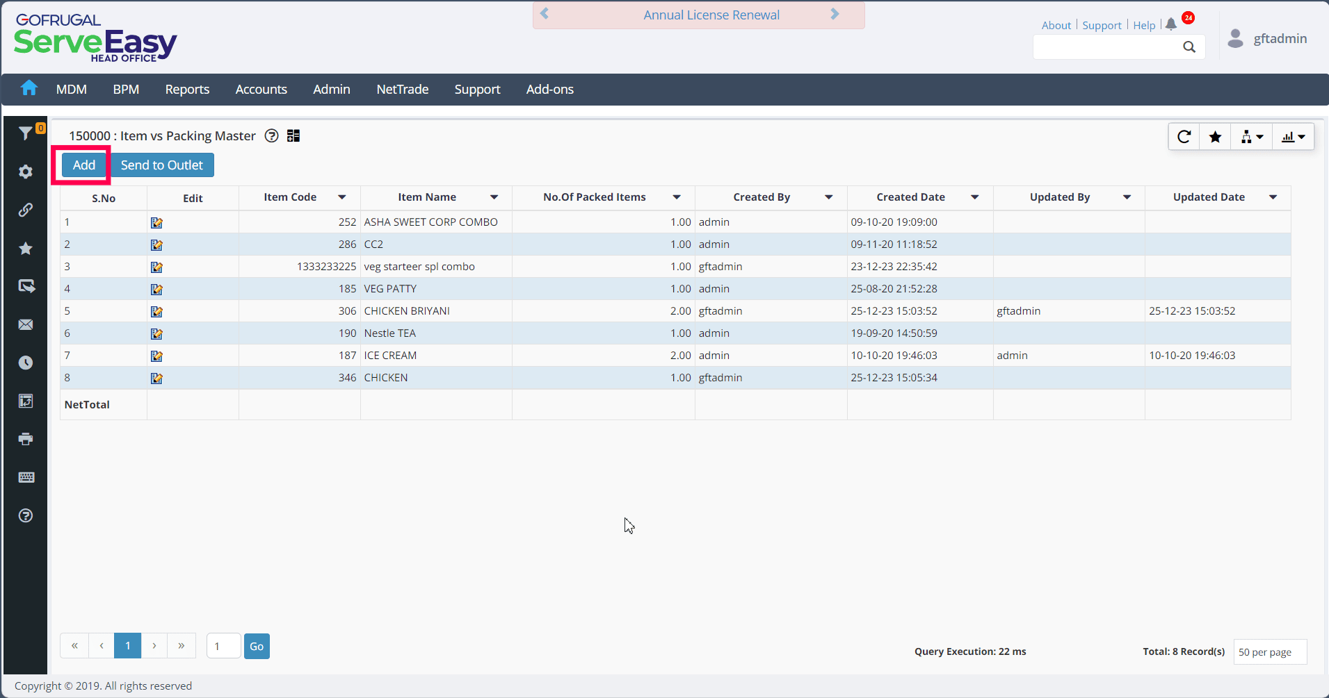 Click the Add button to add the Item Vs Packing master.