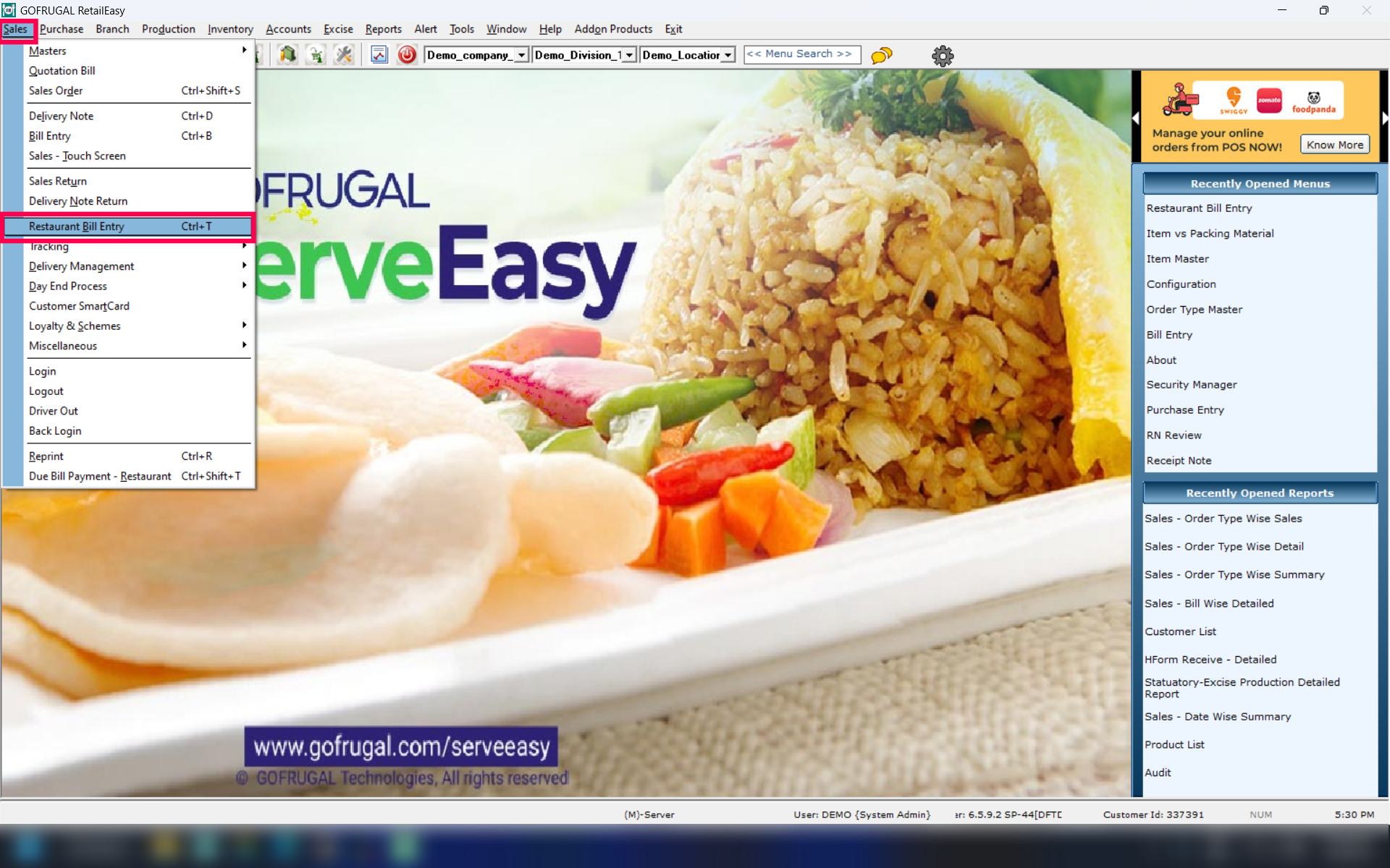 Navigate to Sale > Restaurant Bill Entry.
