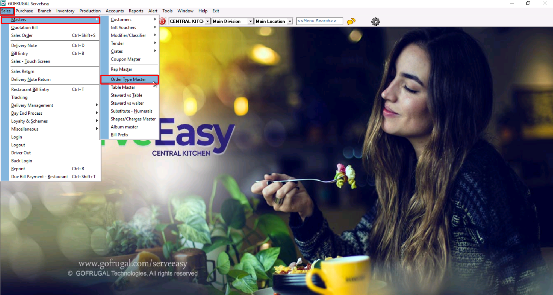 Navigate to Sales > Masters > Order Type Master.
