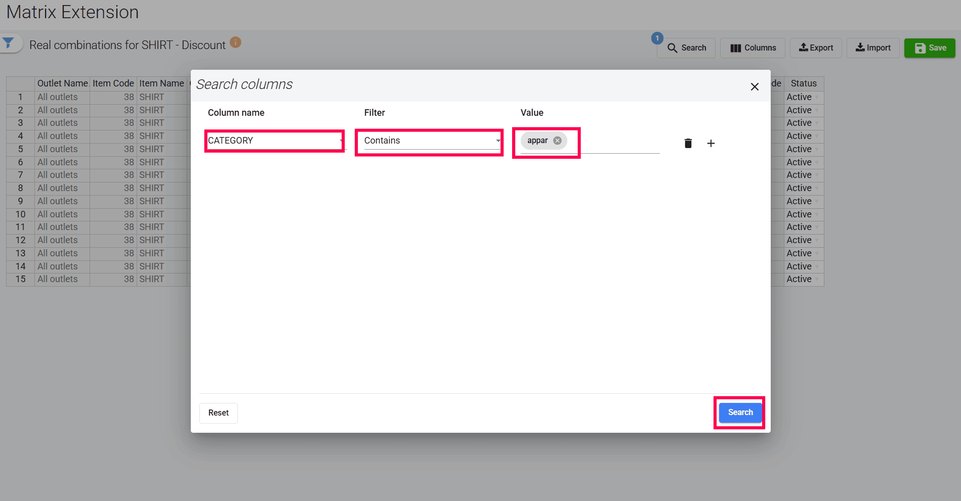 Now, let's explore how to search within the items that have already been filtered in the Matrix Extension screen.