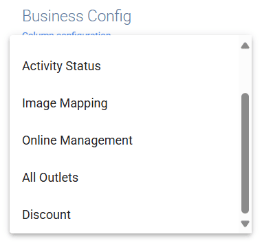 Note: When All Outlets is selected in the outlet selection dropdown, the available options in the Business Config section will be limited to: