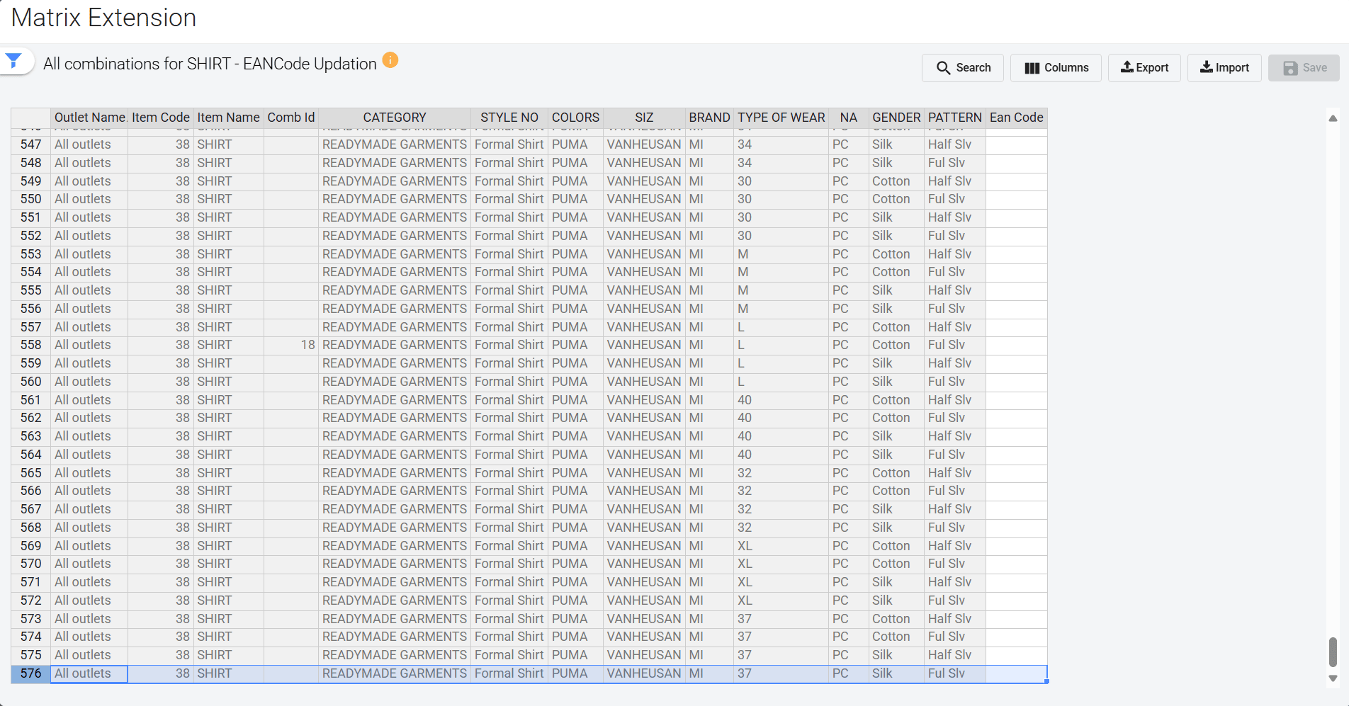 Matrix items are typically used for products with multiple variants, such as Size, Color, Brand, Style, or Fabric. Instead of managing each combination separately, the Matrix Extension allows centralized control over all variants under one parent item.