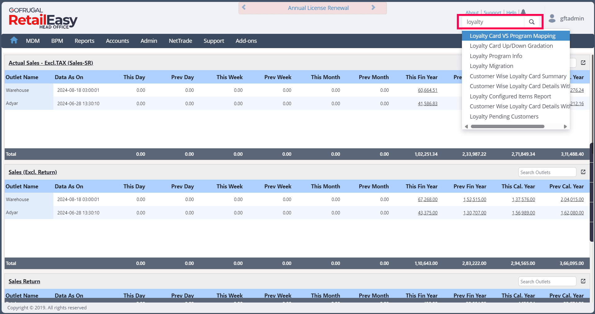 The search bar in Gofrugal HQ is a versatile tool that simplifies navigation and enhances productivity. It allows users to quickly find modules, features, reports, and master data by typing keywords. This saves time, improves efficiency, and streamlines workflows.