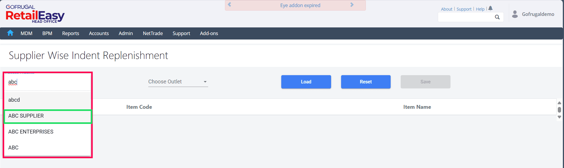 The following section explains the process of executing Supplier Wise Replenishment from HQ.