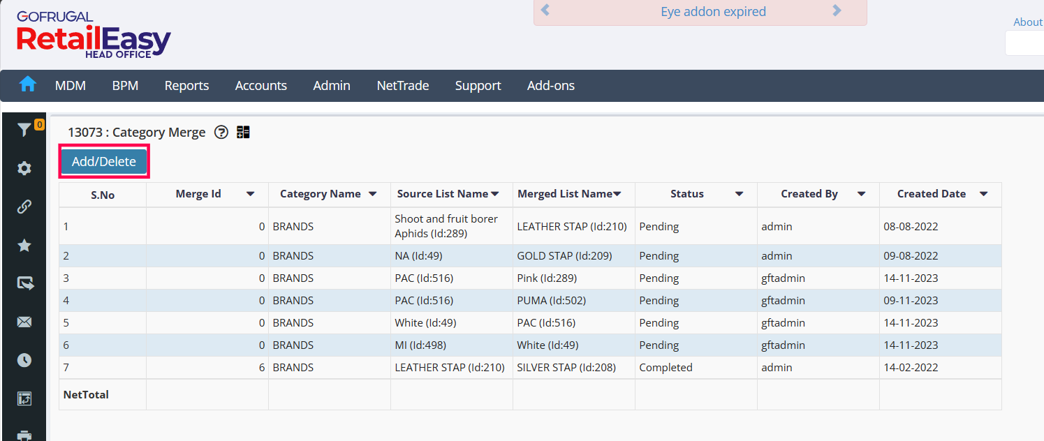 1. Click on MDM > Attribute Master Management > Category Merge.