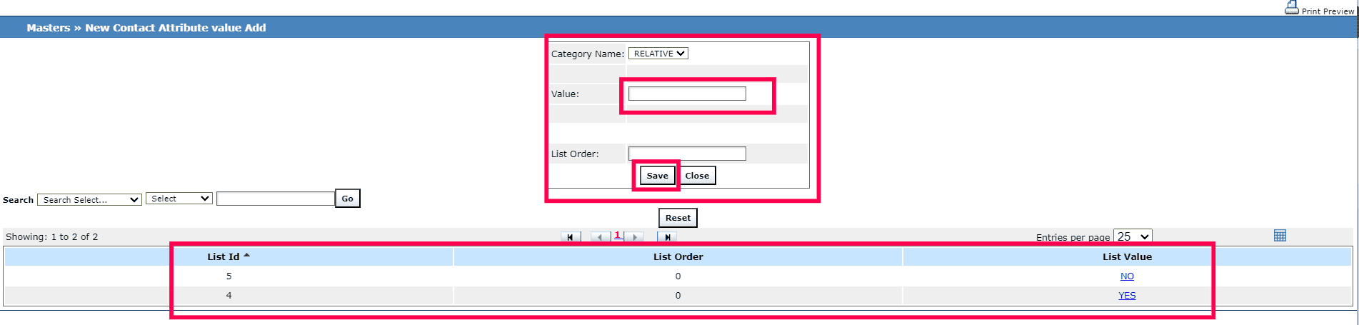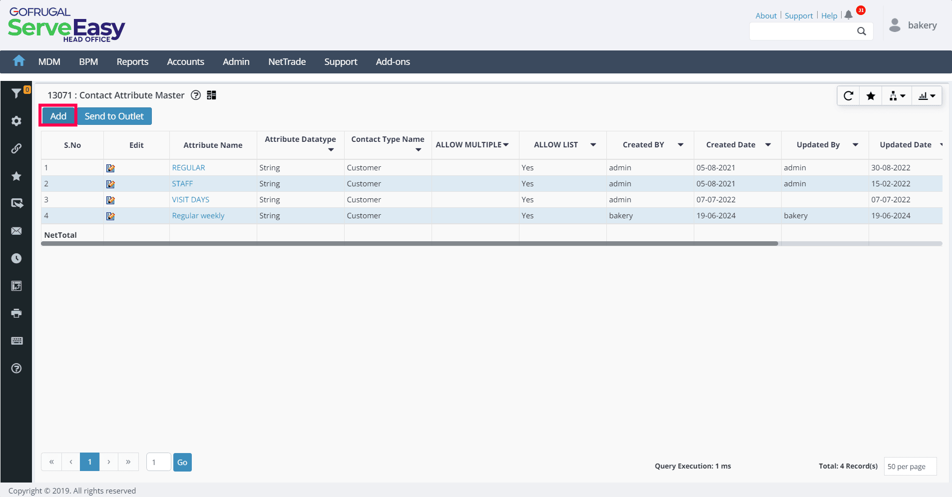 2. In the Contact Attribute Master, click Add to add a new record.