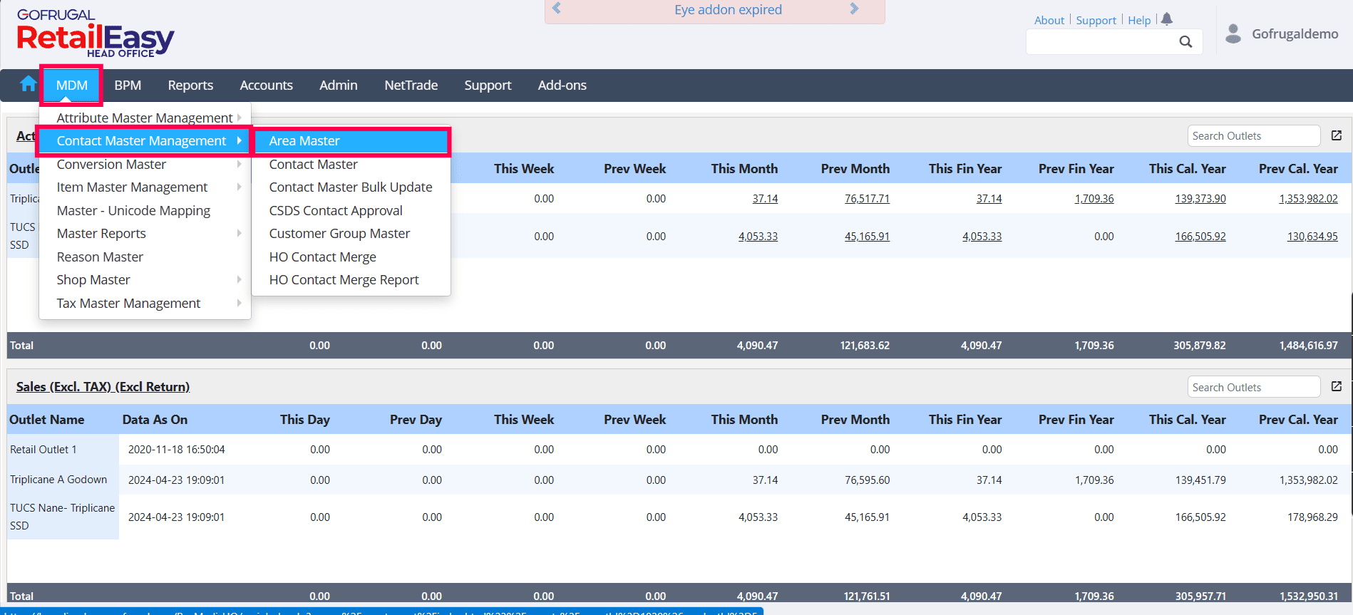 While Area Masters and Contact Masters are both part of GOFRUGAL HQ's MDM module, they serve distinct purposes.