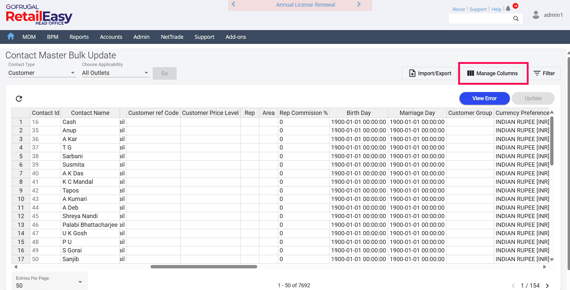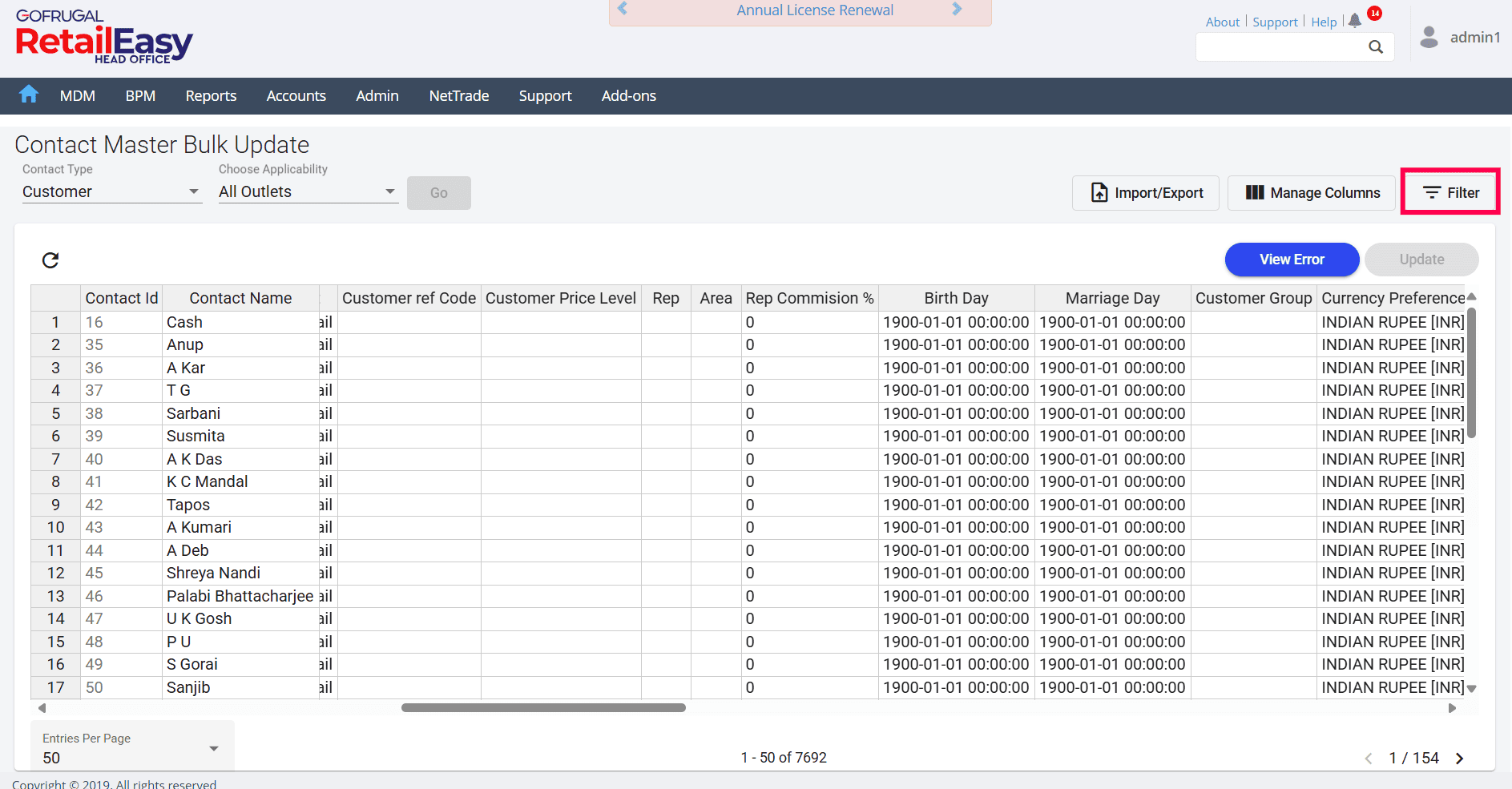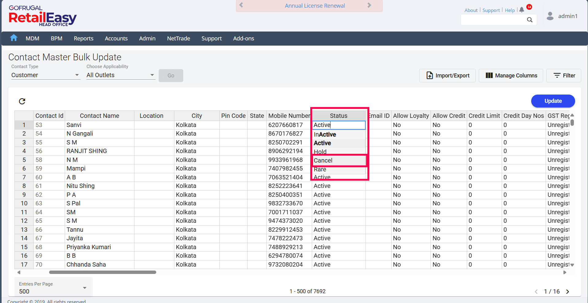 Contact Master Bulk Update in GOFRUGAL HQ This document explains how to perform a bulk update on contact information within the Contact Master module of GOFRUGAL HQ. This functionality is beneficial when you need to modify the same details for a ...
