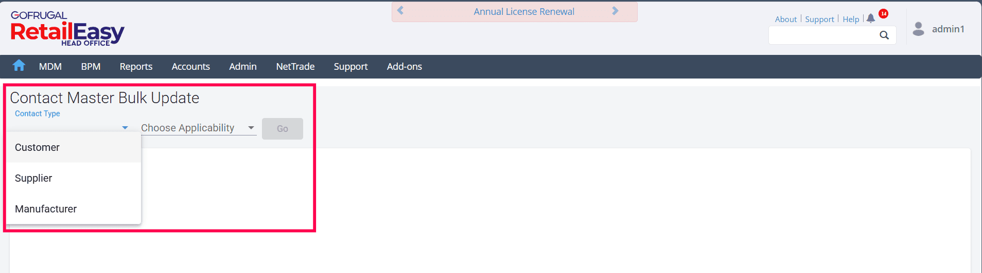 1. Click on MDM > Contact Master Management > Contact Master Bulk Update.