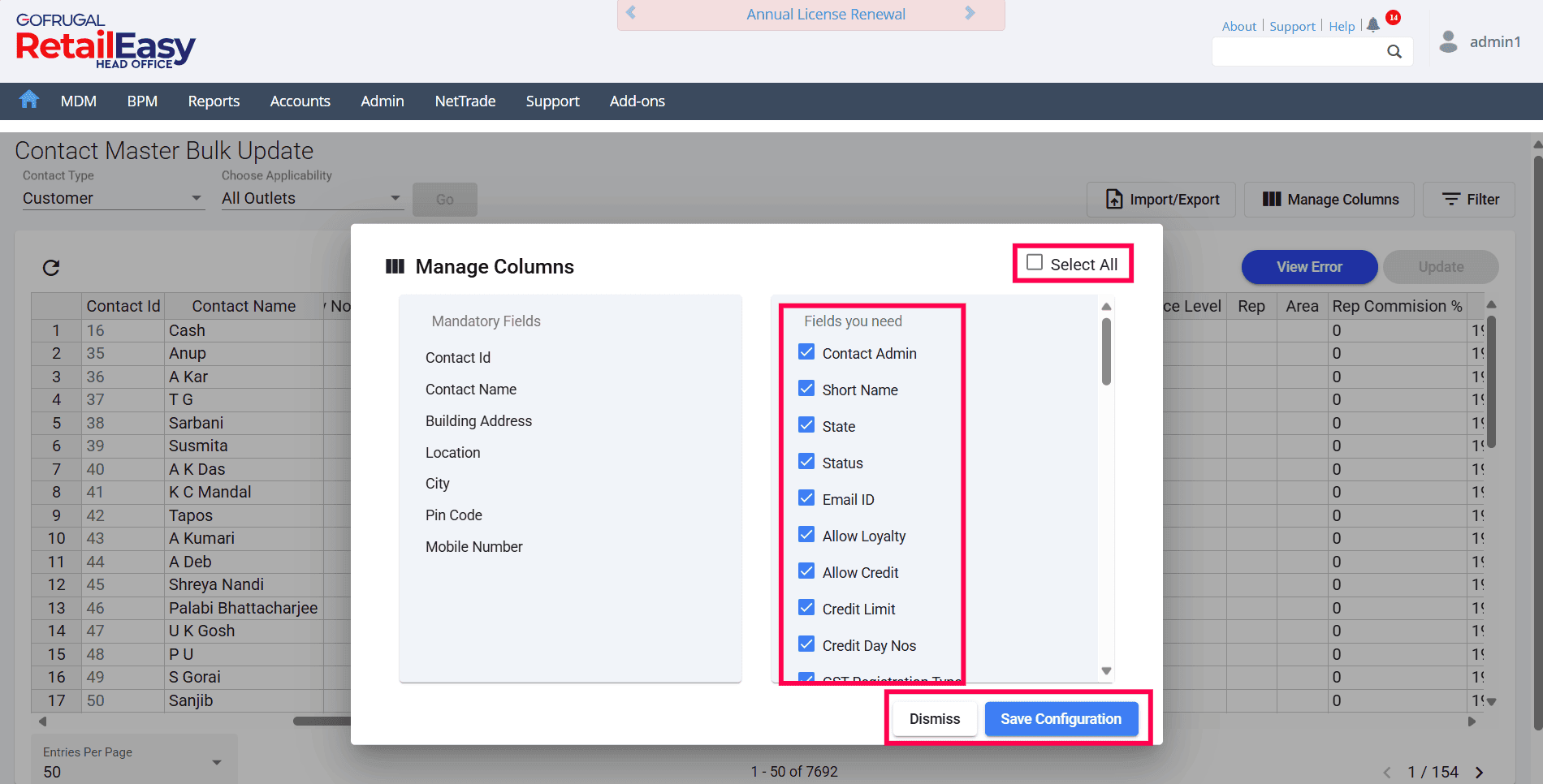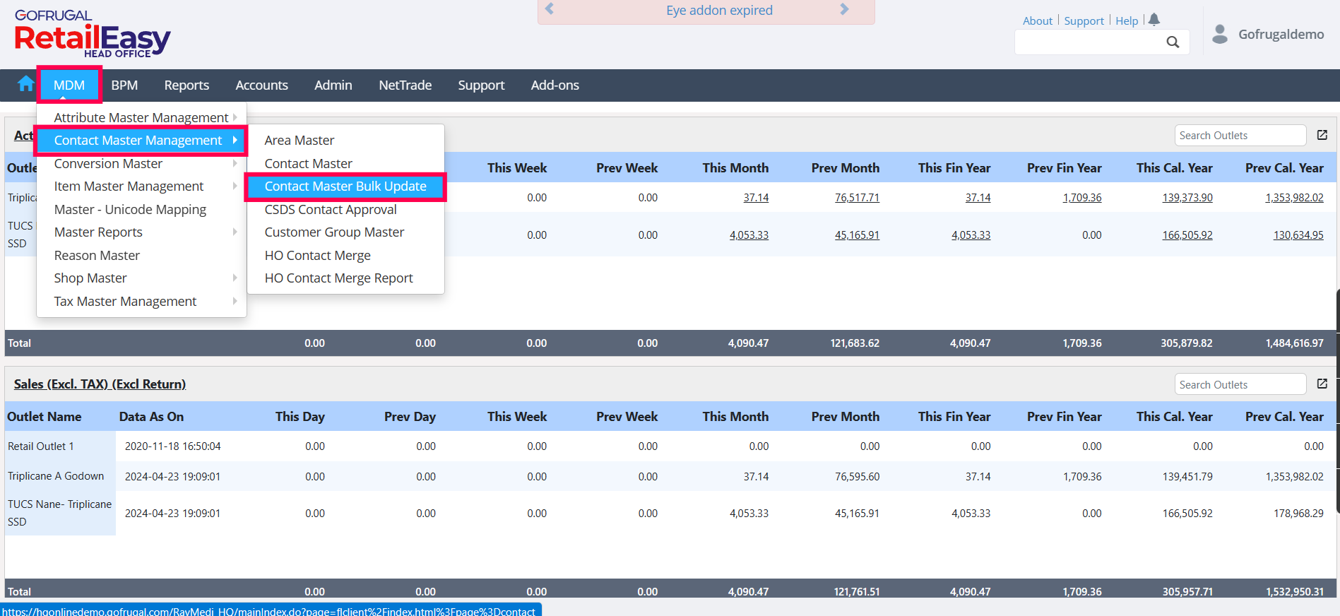 This document explains how to perform a bulk update on contact information within the Contact Master module of GOFRUGAL HQ. This functionality is beneficial when you need to modify the same details for multiple contacts simultaneously.