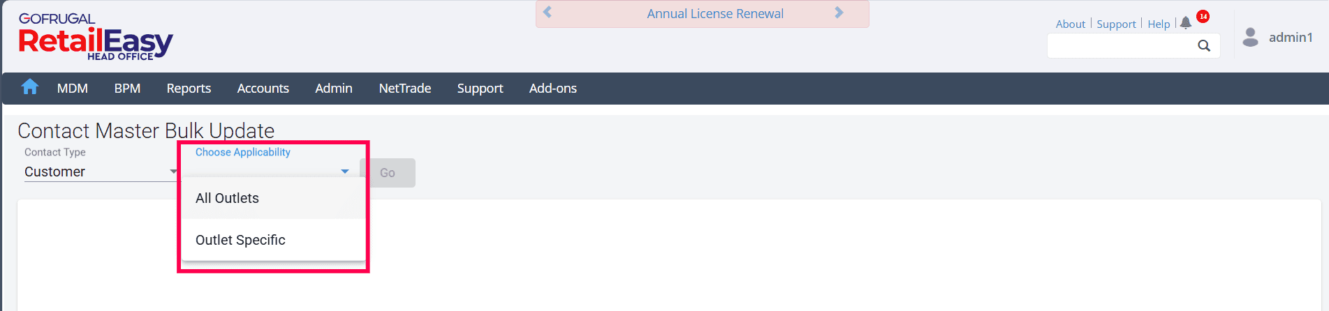 3. Select All Outlets or Outlet Specific from the list based on your needs. Then click Go.