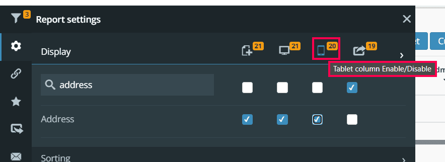 Tablet column Enable/Disable: The third choice is the Tablet column Enable/Disable feature. This allows you to turn the columns on or off for tablets and mobile devices.