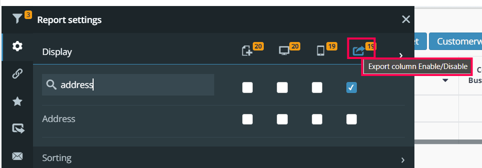Export column Enable/Disable: The final option available is the Export column Enable/Disable feature. This allows you to export the column details in either Excel or CSV formats. If this option is not enabled, the details won't be exported.