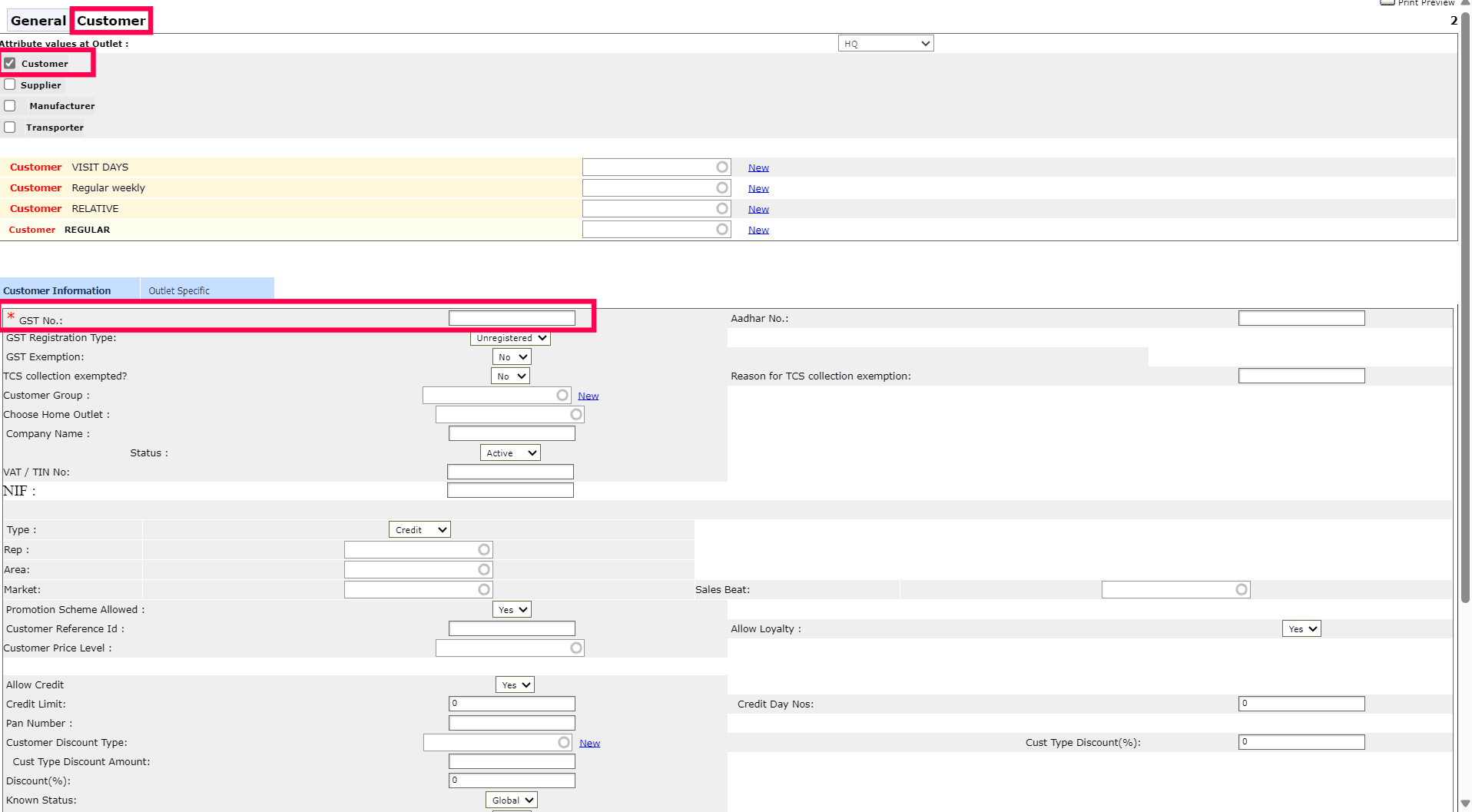 7. Fill out all the relevant information under the Customer Information tab.