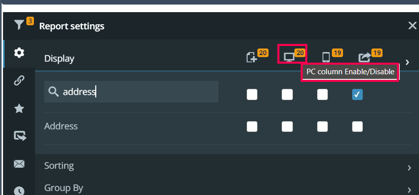 PC column Enable/Disable: The second option is the PC column for enabling or disabling. These columns will only be accessible on the PC.