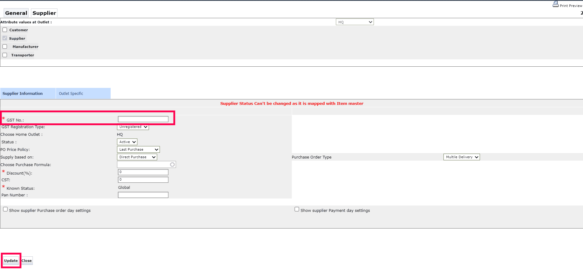 2. Do the necessary updates and click Update to complete the changes.