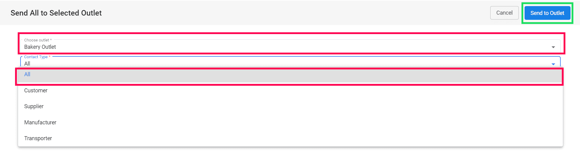 Once you've finished creating or updating the contact master, it's important to send the contacts to the outlets.
