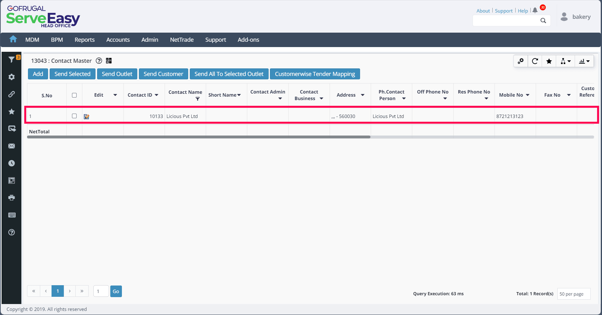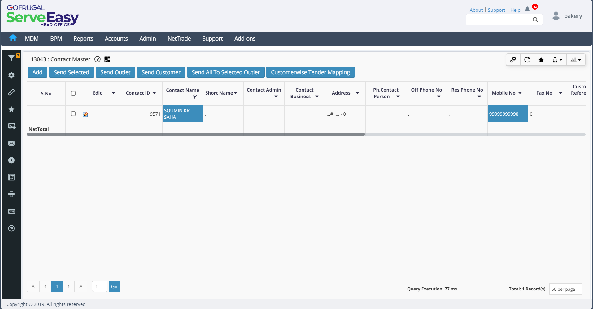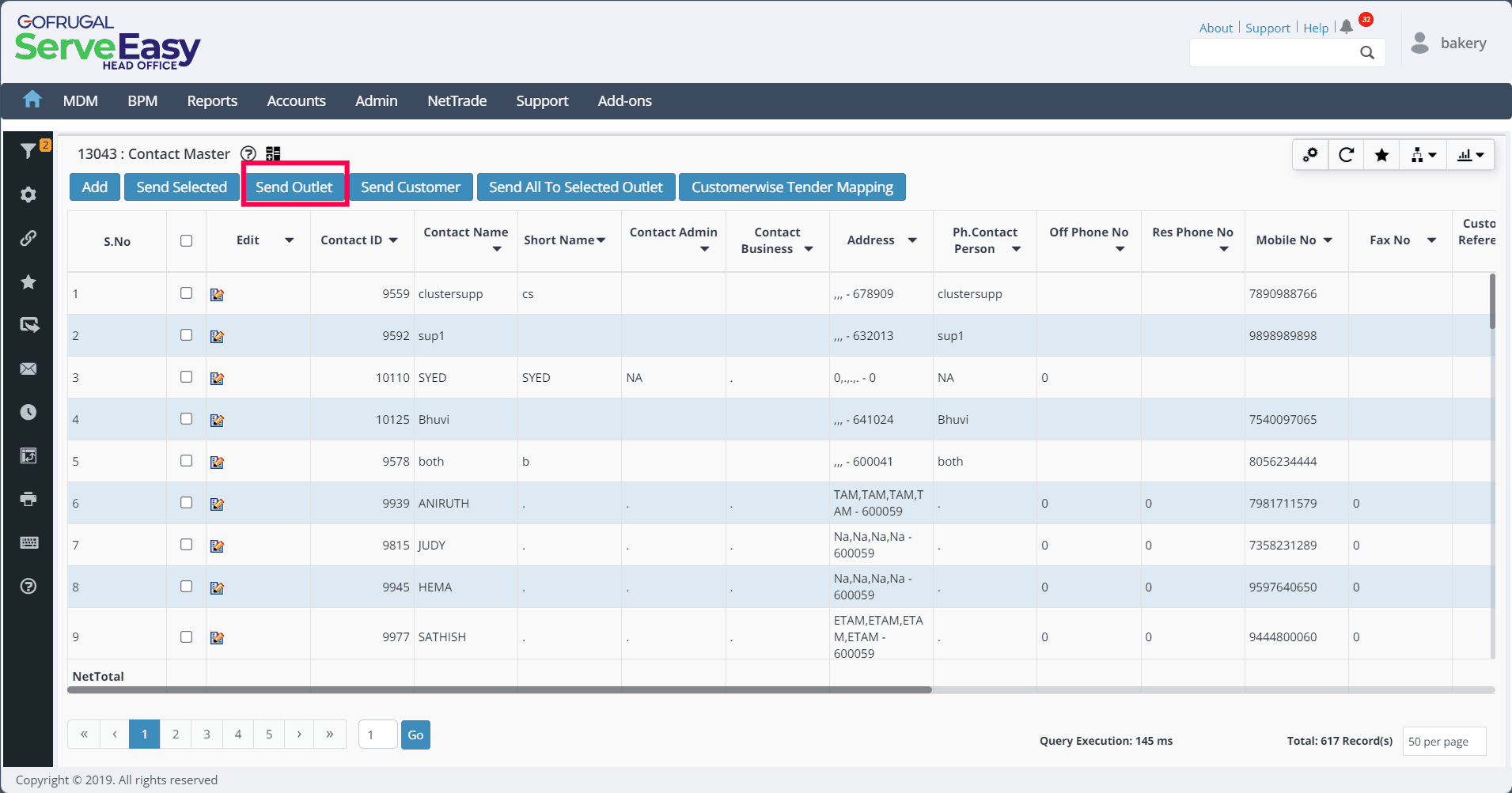 4. Click on Send All To Selected Outlet to send all or the desired contact masters to the selected outlets.