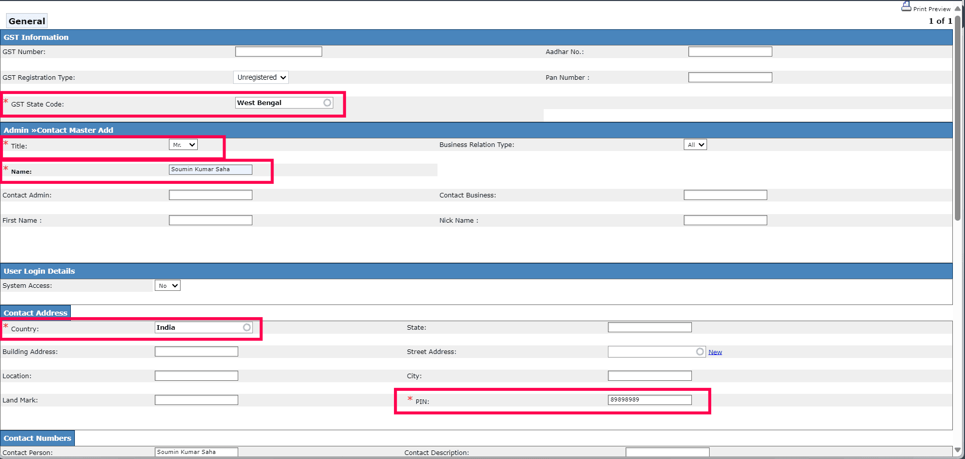 8. After filling in all the data, scroll down and click Save to save the contact master.