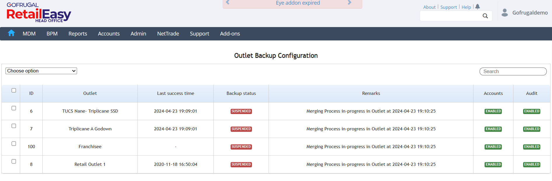 Outlet backup status will be suspended until the merge process is completed at the outlet level.
