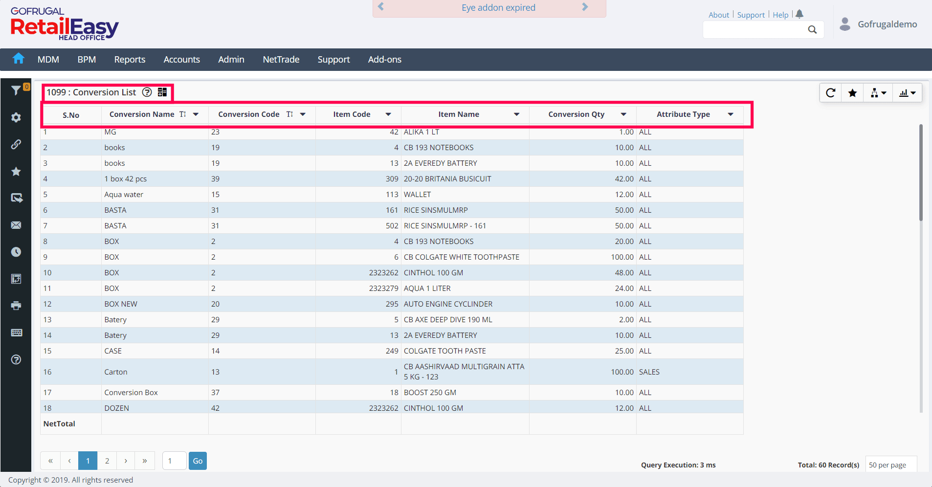 Conversion is used to convert from one unit to another, like from Pieces to Box, from Pieces to Cartoon etc. Benefit: Suppose you purchase items in Box or Cartoons and Want to sell in Pieces or in Box/ cartoon or transfer the items into different ...