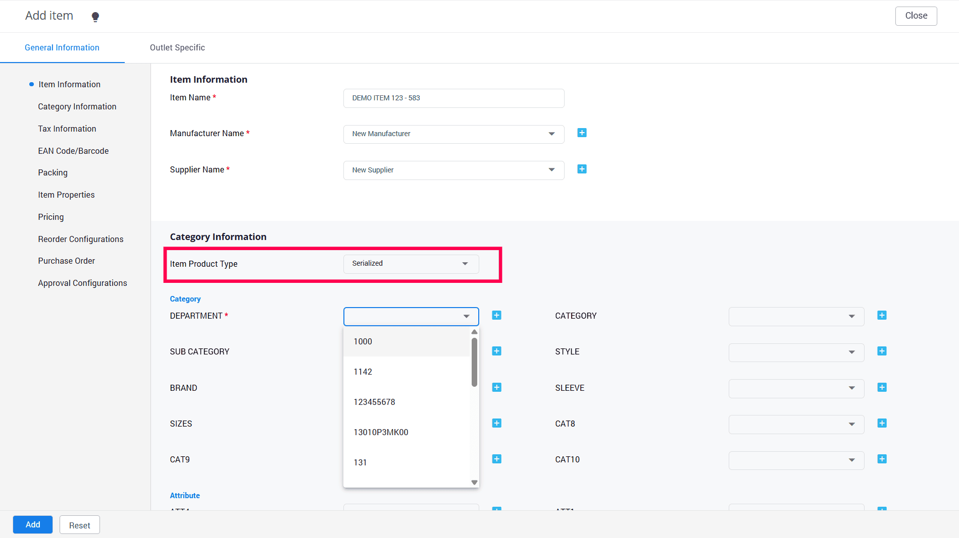 Select the product type as Serialized.