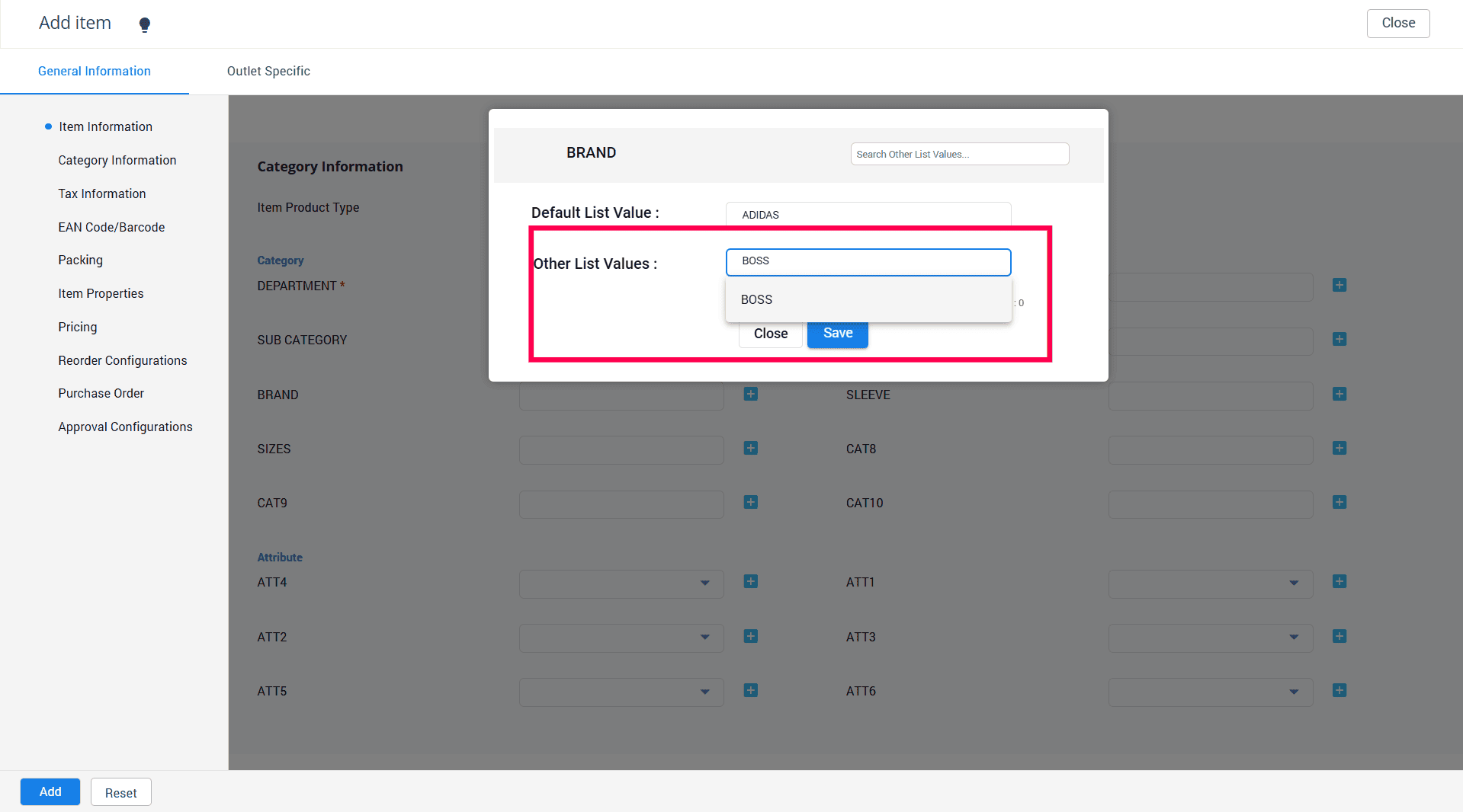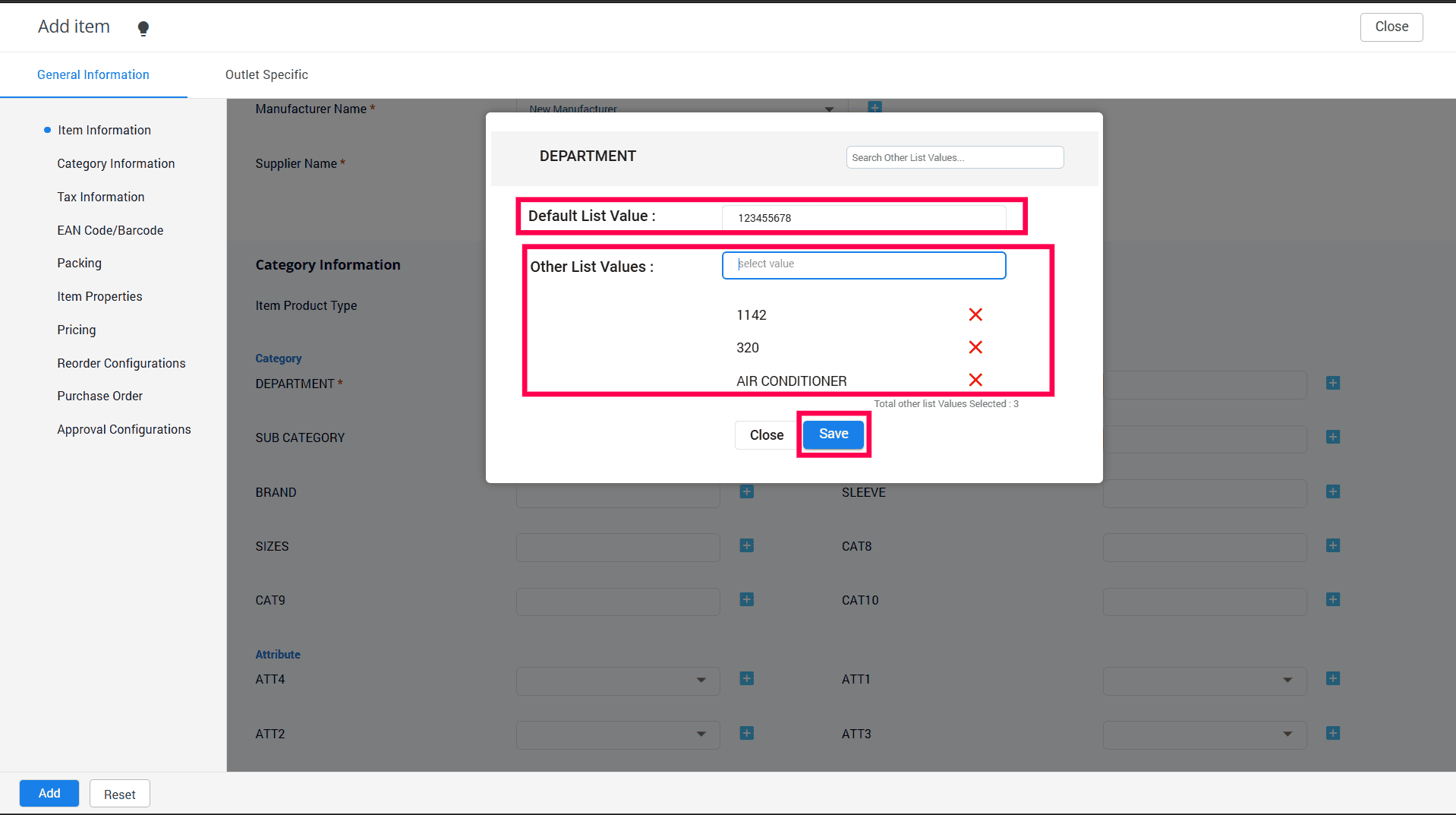 See the below screenshot to see how the newly created value is displayed on the item master screen.