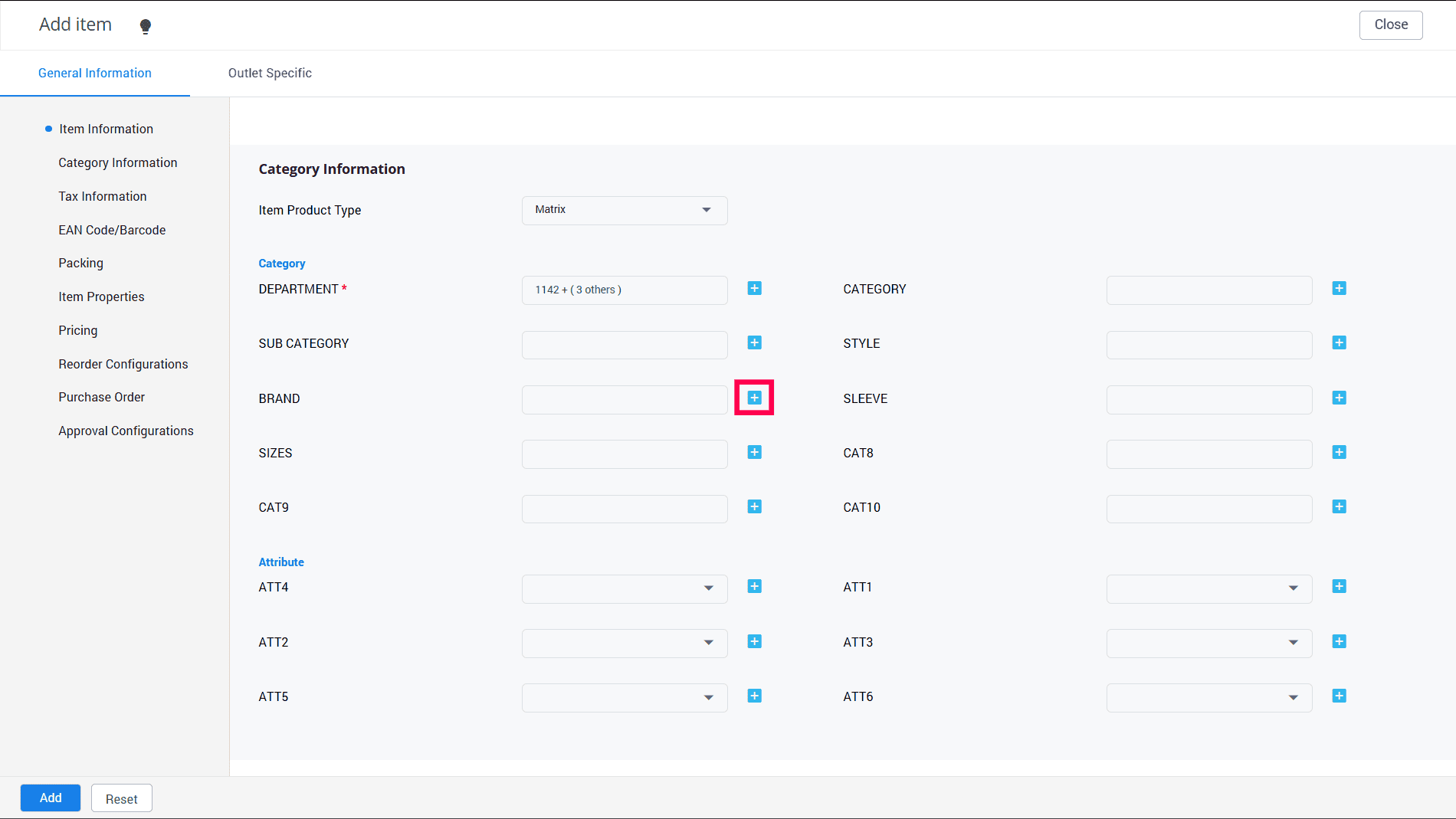 If you want to create a new combination for the categories from the same screen, just click + next to the appropriate option.